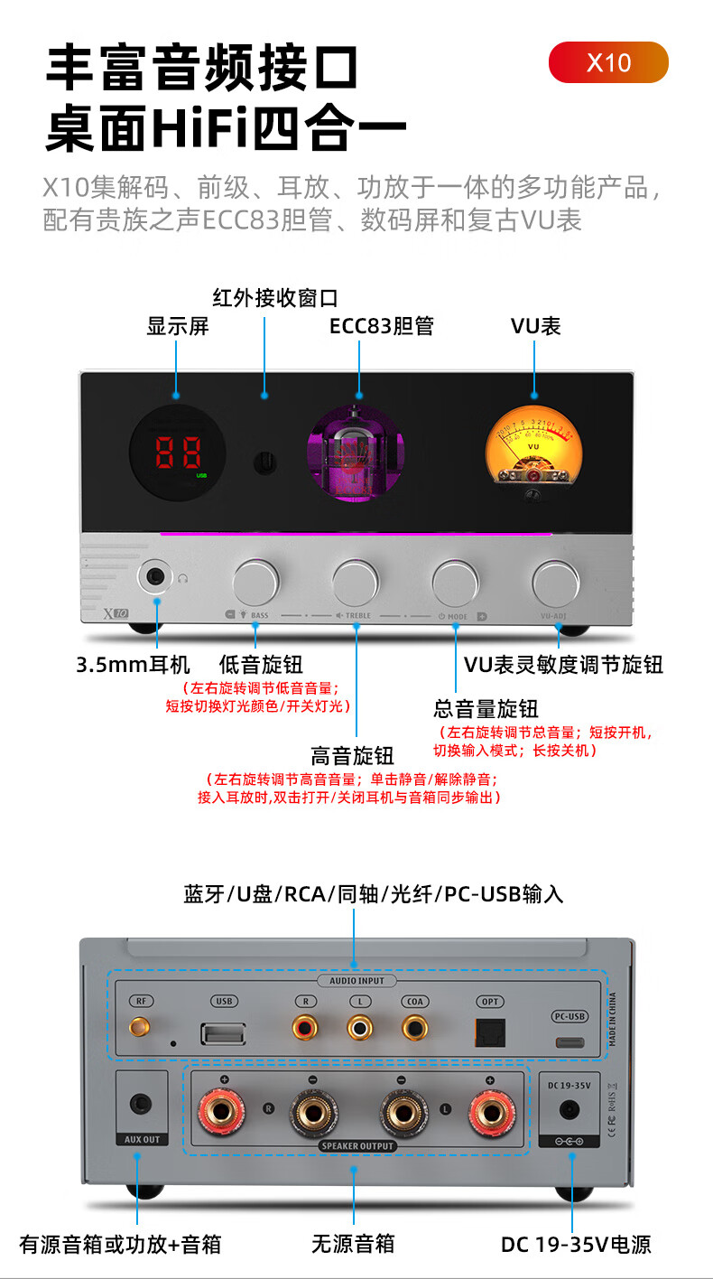 SUCA AUDIO X10 power amplifier high-power power amplifier Bluetooth 5.4 lossless U disk digital decoder tube pre-amplifier fever-grade power amplifier audio set