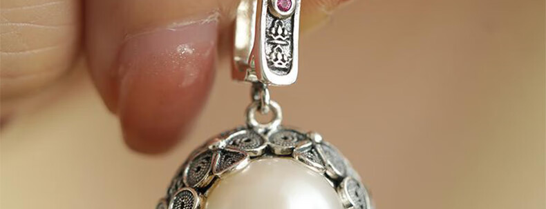 KUXA925 silver retro new Chinese style filigree pearl flower pendant necklace pendant niche design high-end versatile pendant + crown necklace