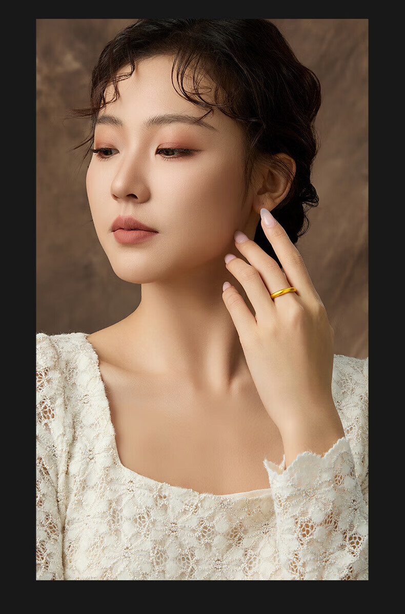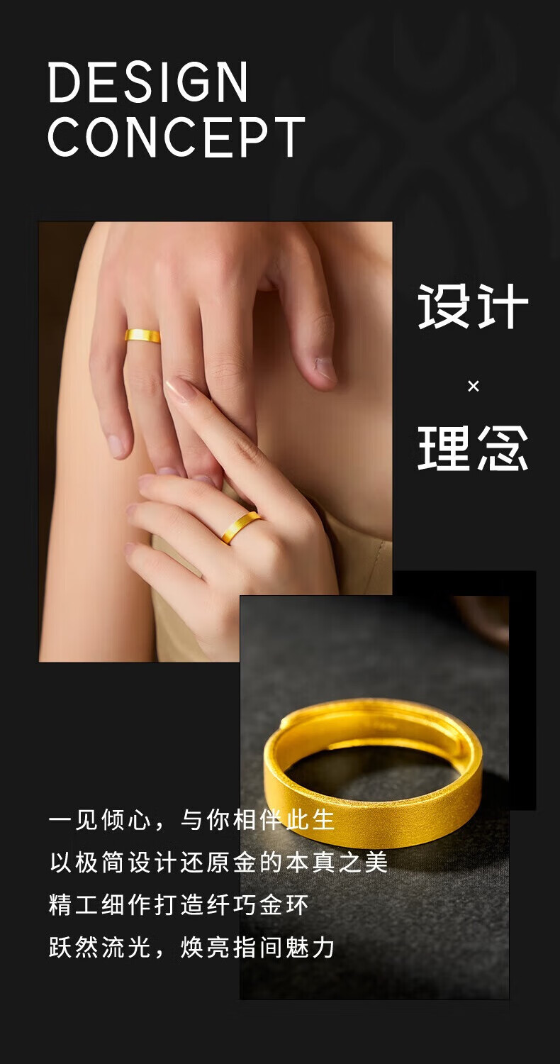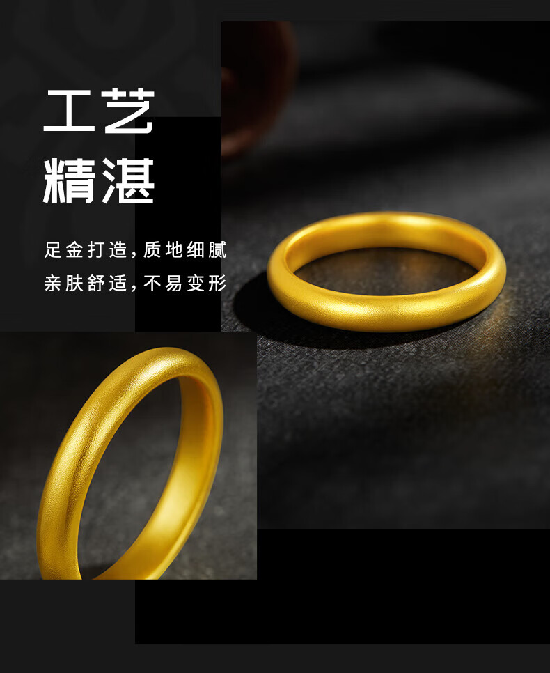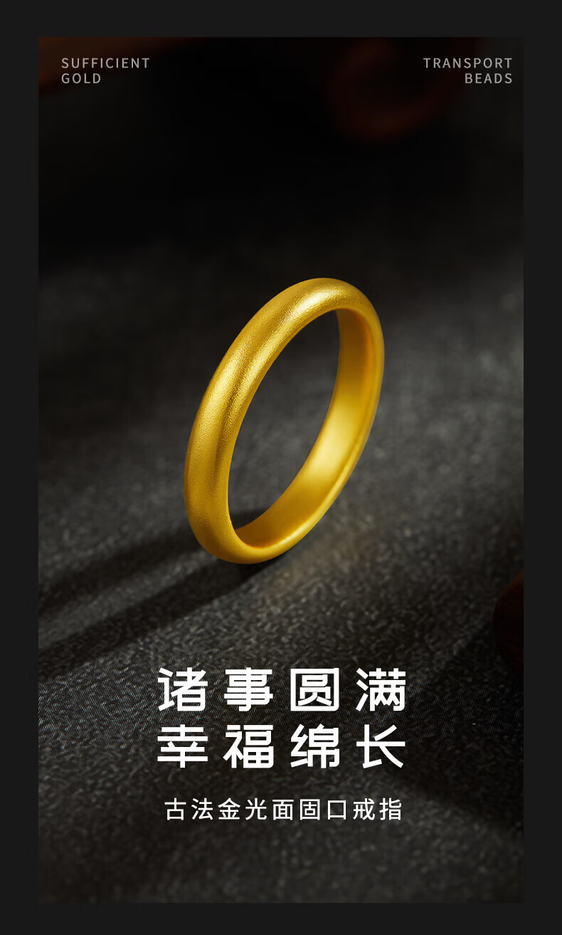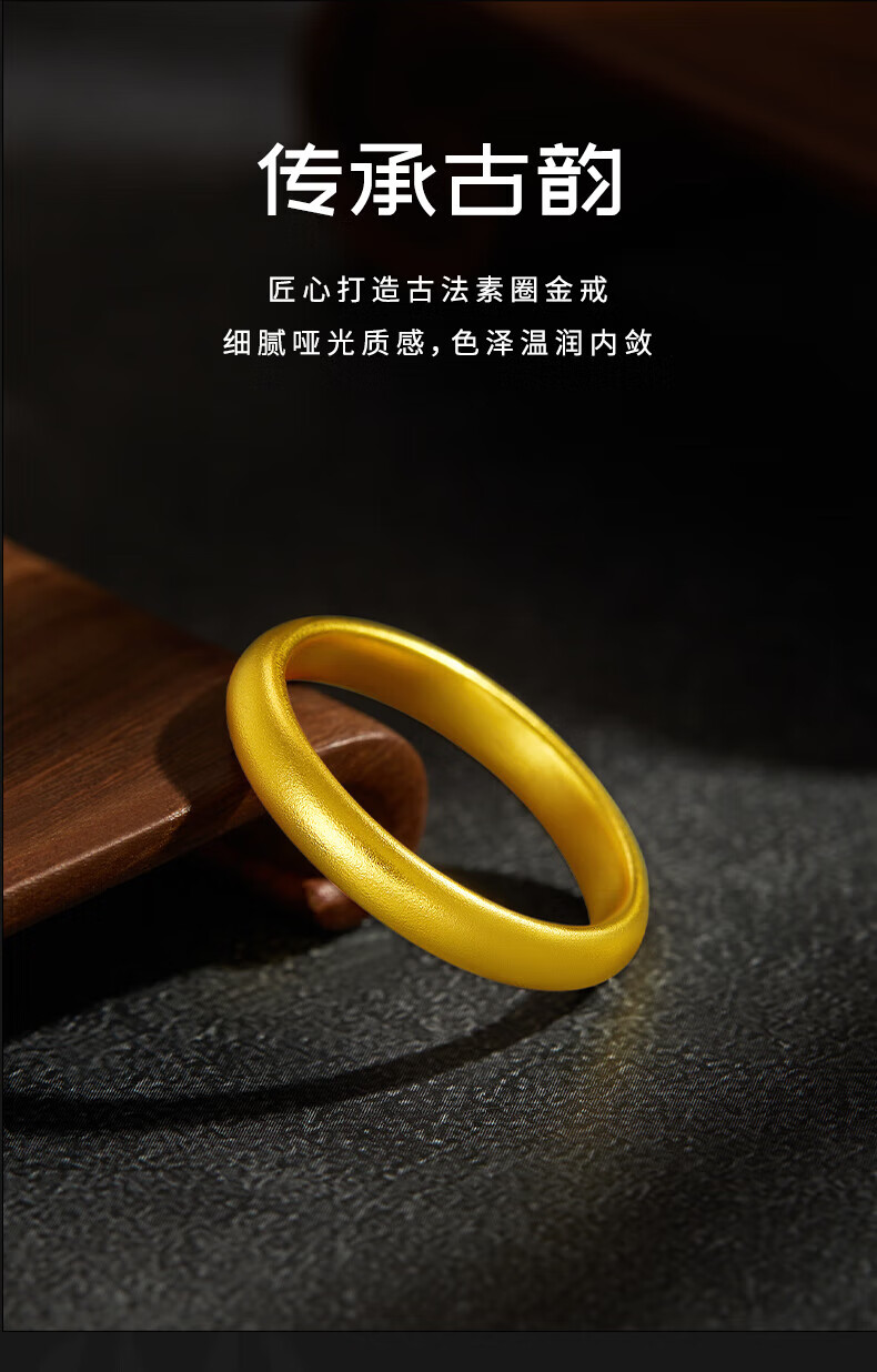 China Gold (CHINA GOLD) gold ring, ancient style loach back ring, solid gold 999 plain ring ring, same style for men and women, gift to girlfriend and wife 520, about 4.4g, 12 rings