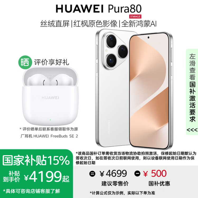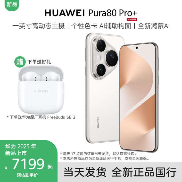 Huawei Pura 80 Pro mobile phone, national subsidy of 500 yuan + free Huawei Bluetooth headset with order, glazed gold, 12GB+512GB, official standard configuration