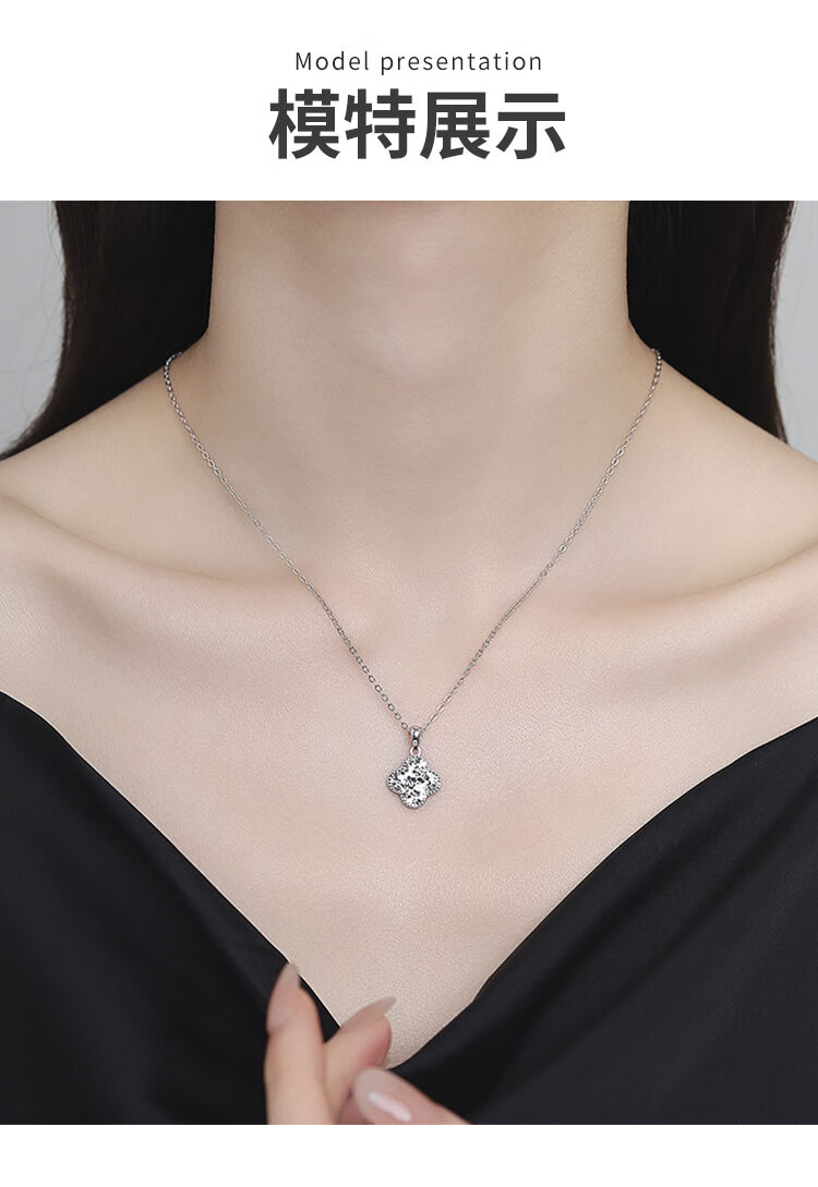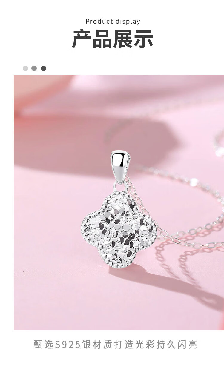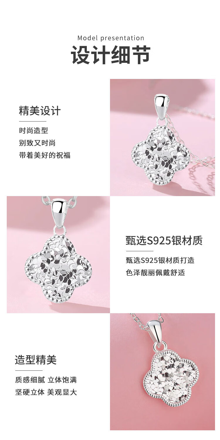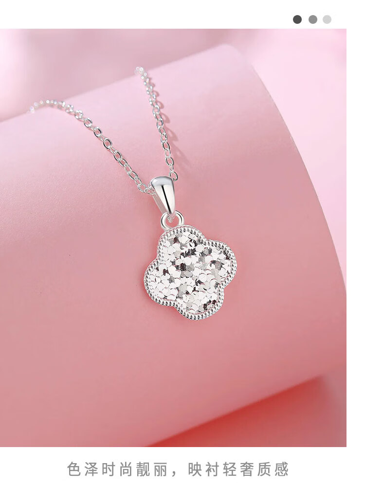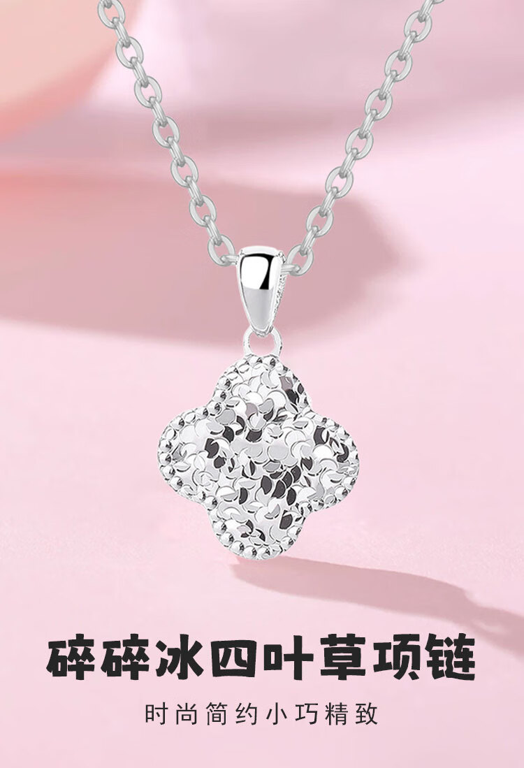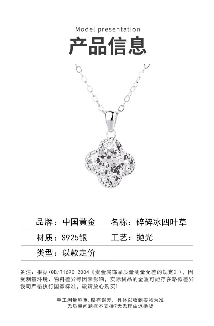 CHINA GOLD S925 Silver Necklace Women's Crushed Ice Clover Pendant Jewelry Valentine's Day Birthday Gift for Girlfriend and Wife Crushed Ice Clover Necklace