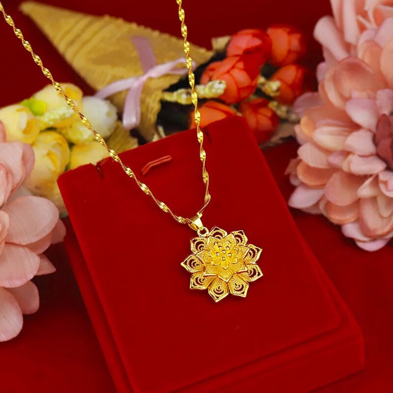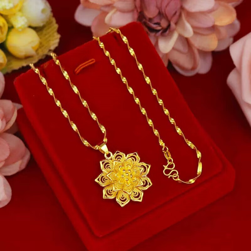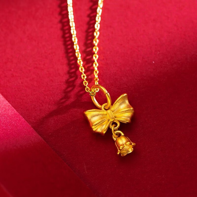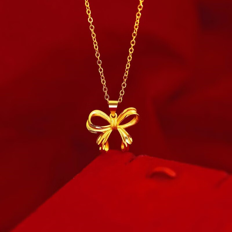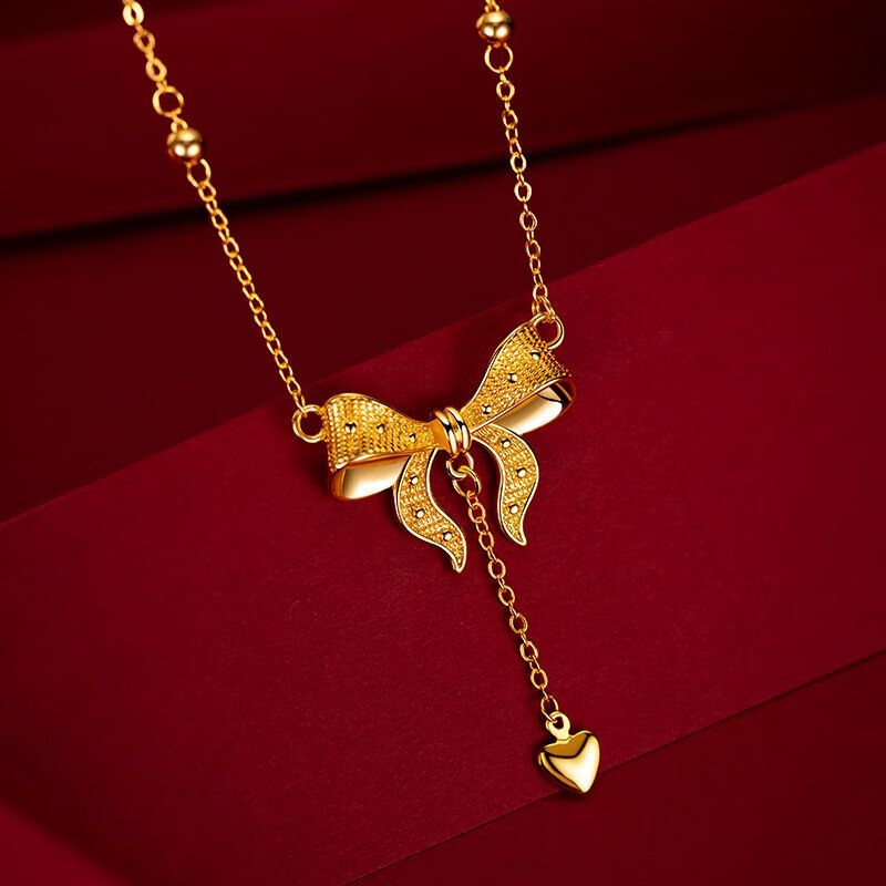 MHFDO old phoenix quality Vietnamese sand gold necklace women's 999 pure gold 18K gold-plated bow flower pendant clavicle heart-to-heart O-word necklace