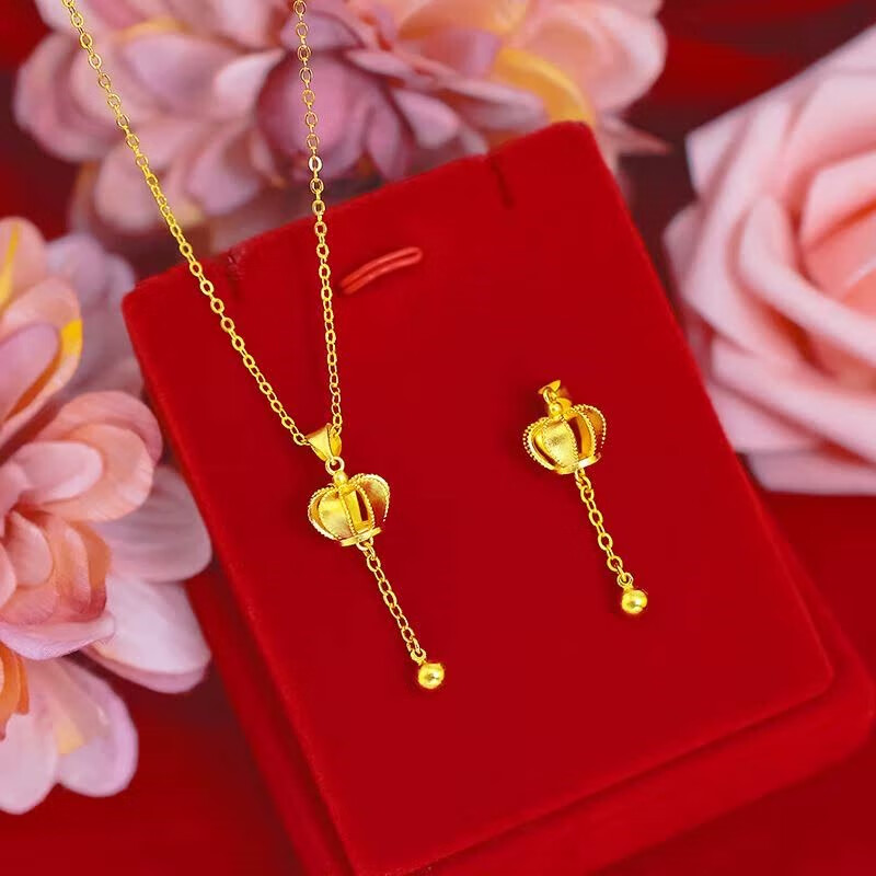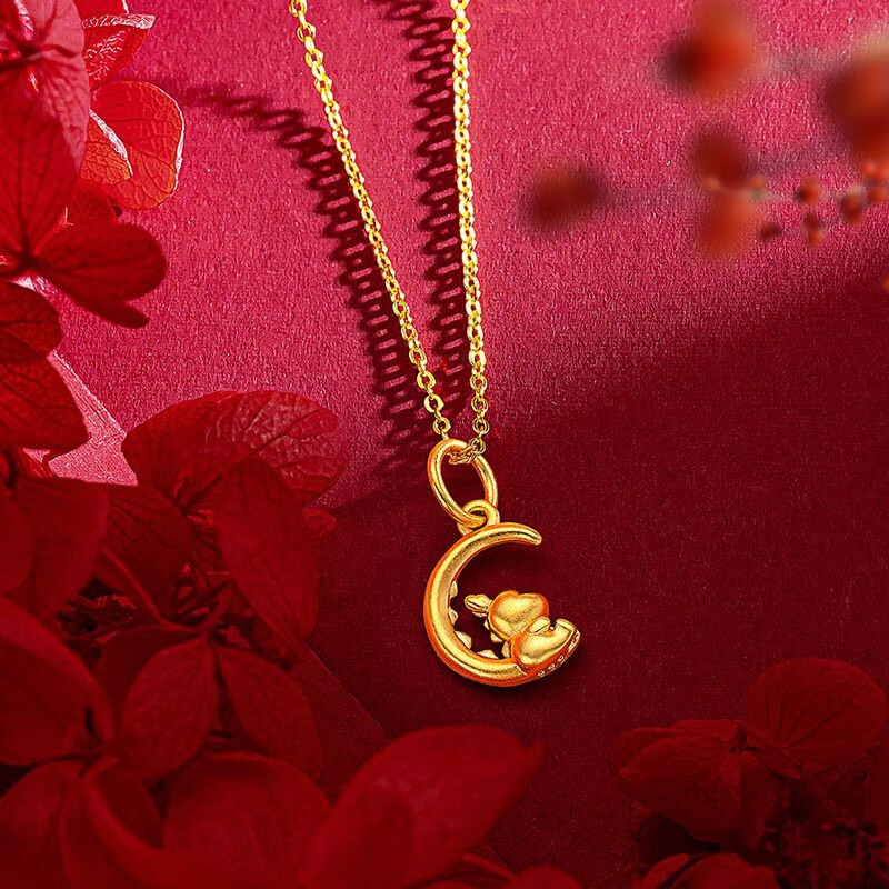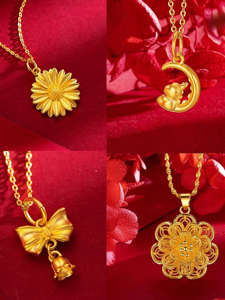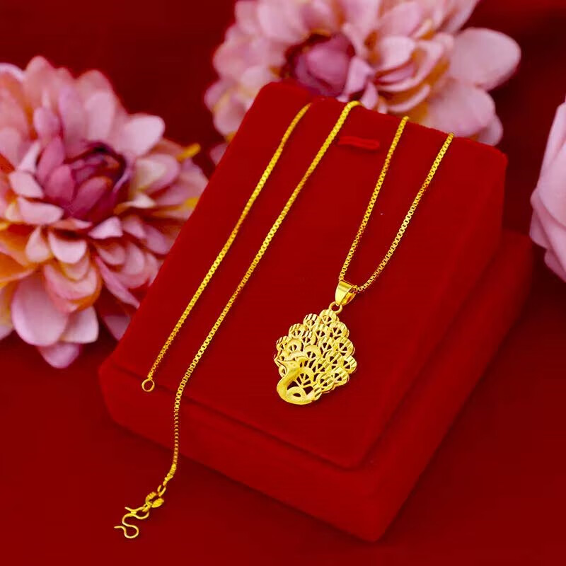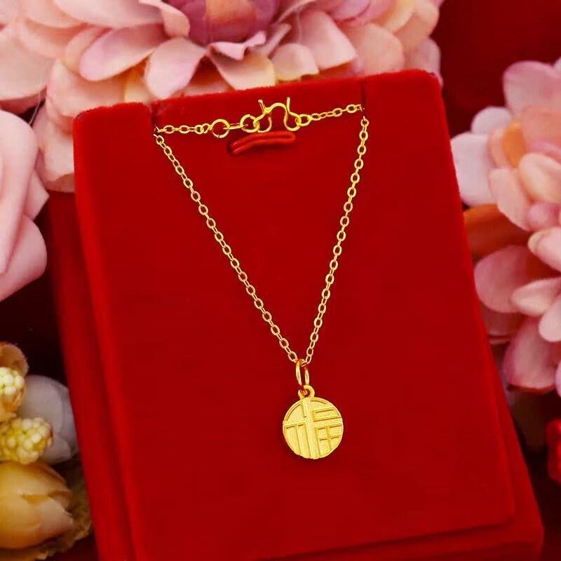 MHFDO old phoenix quality Vietnamese sand gold necklace women's 999 pure gold 18K gold-plated bow flower pendant clavicle heart-to-heart O-word necklace