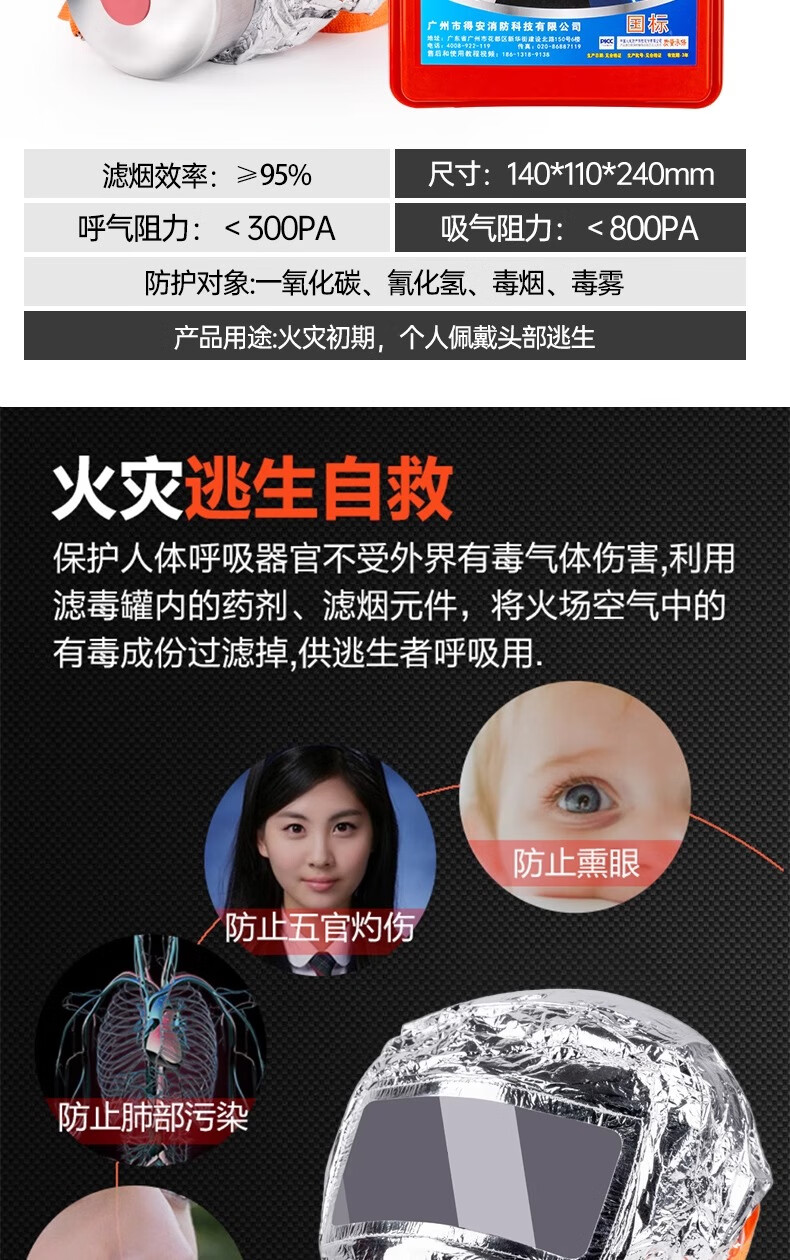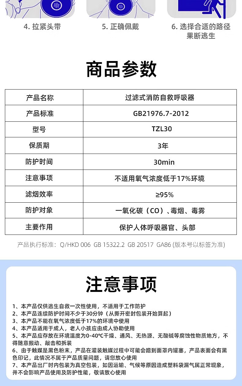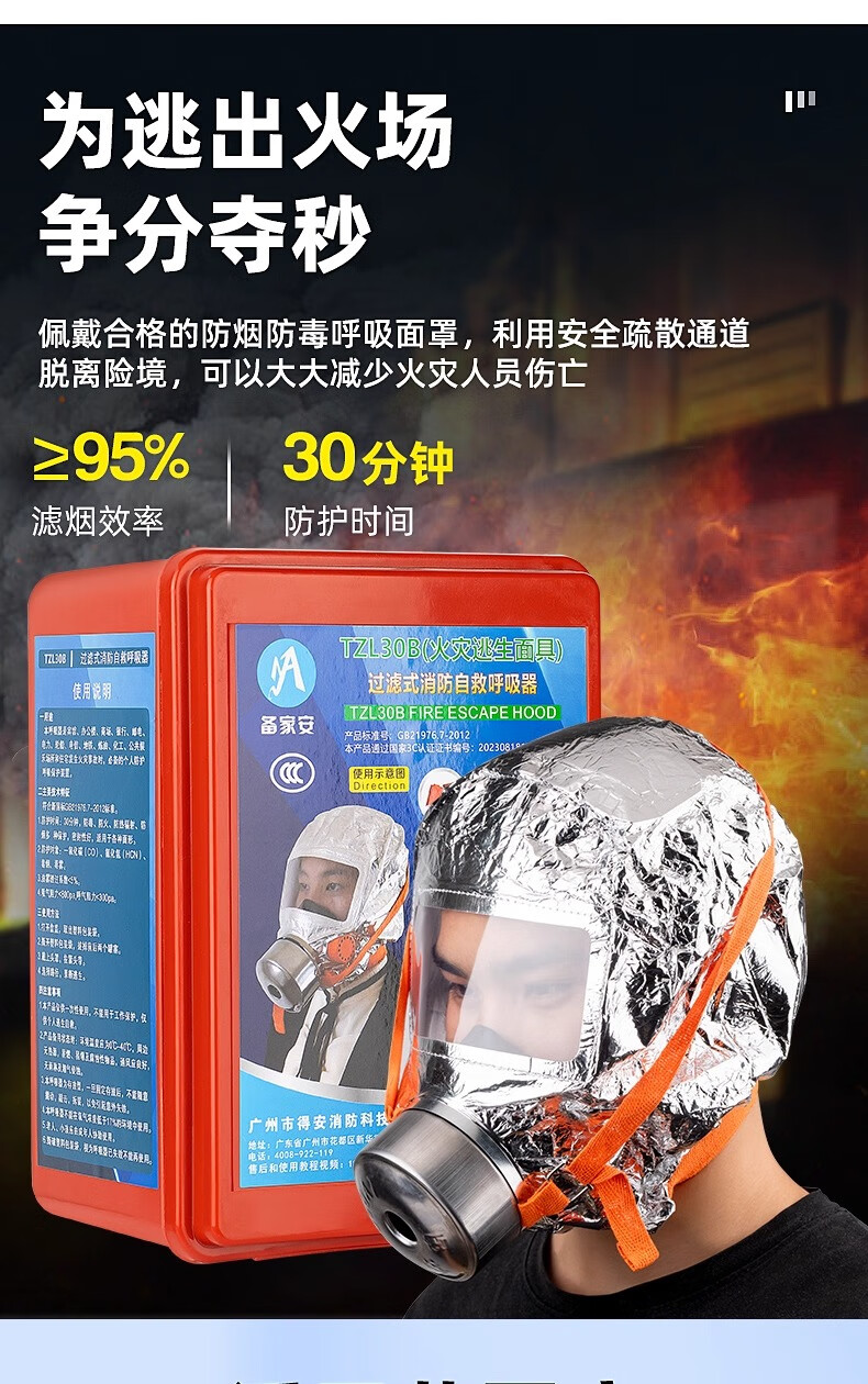 Fire mask anti-virus and anti-smoke mask 3C certified rental hotel fire escape filter self-rescue respirator TZL30A fire mask children's CCC certification