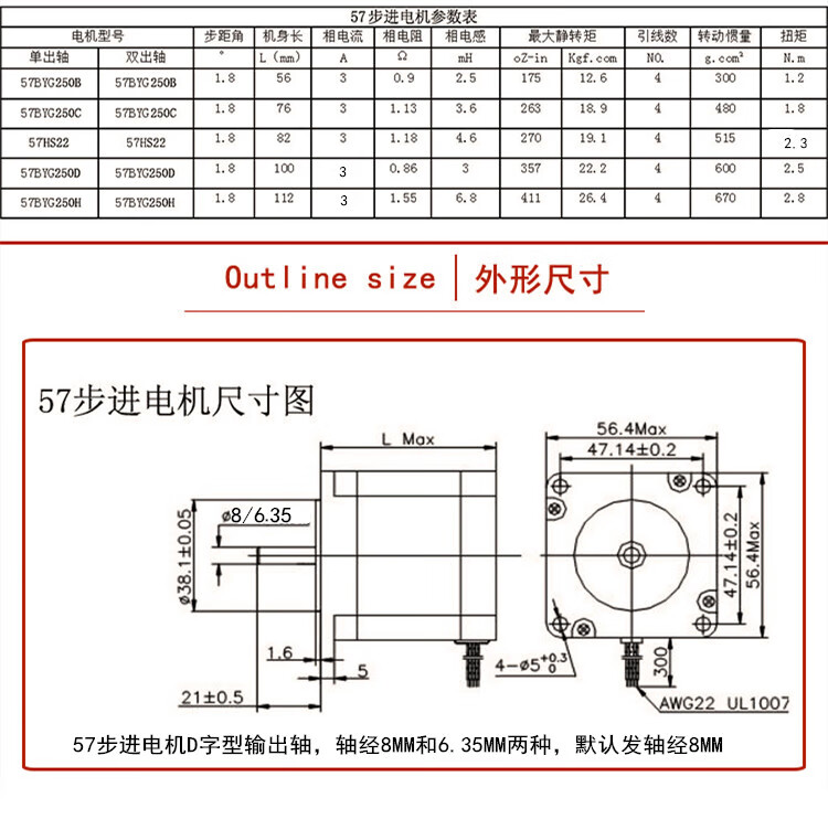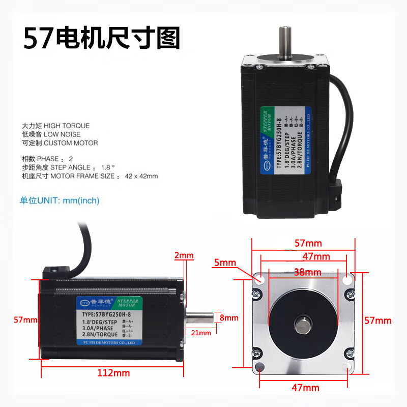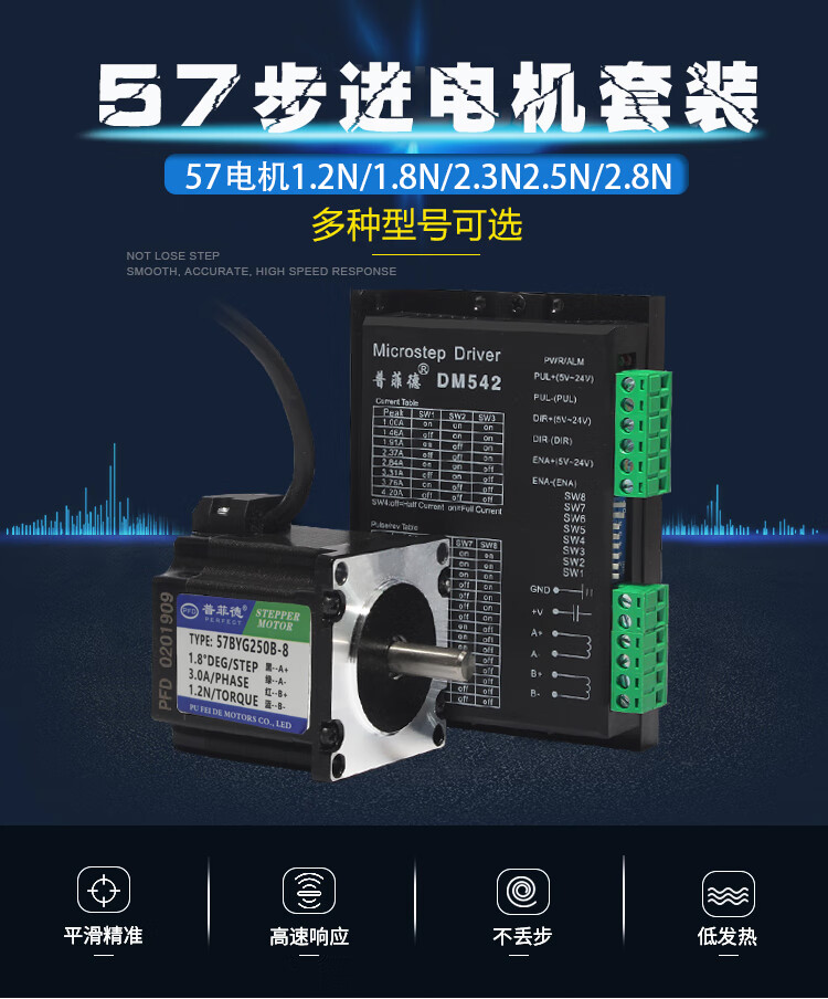 Yue Changsheng Pufide 57 stepper motor set high torque 1.2N/1.8N/2.3/2.8N/3.6N driver DM542 57 motor 2.8N+DM542S set double output shaft