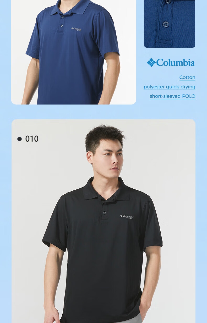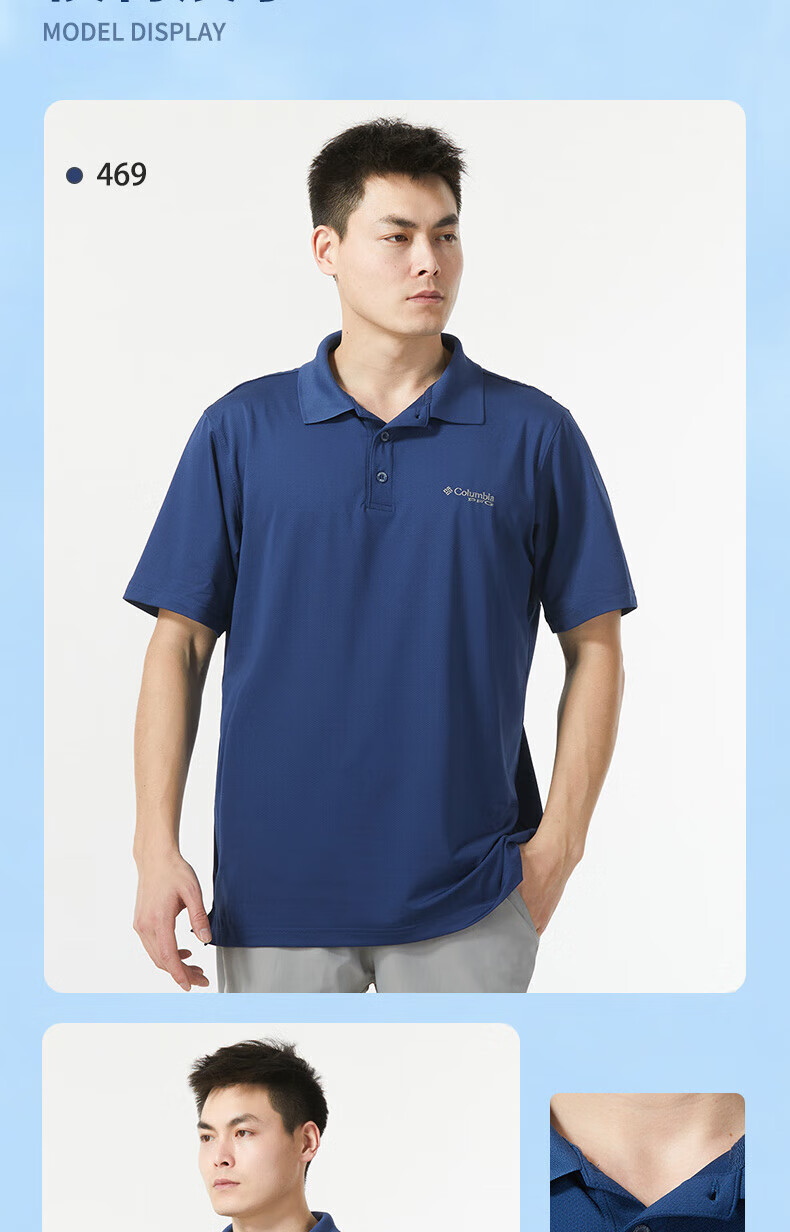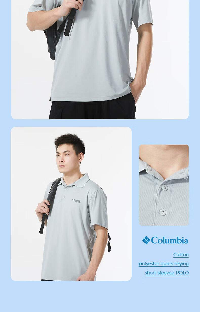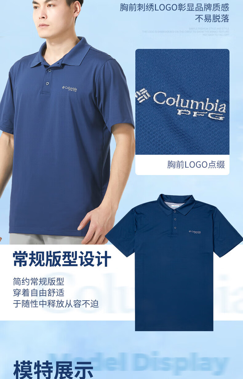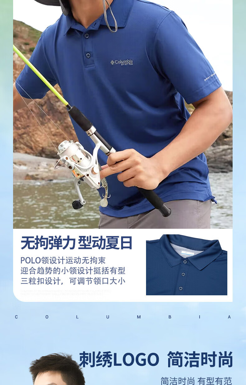 Columbia outdoor spring and summer new men's fishing series quick-drying breathable short-sleeved POLO shirt FE1038 455 blue 2XL/190/104A