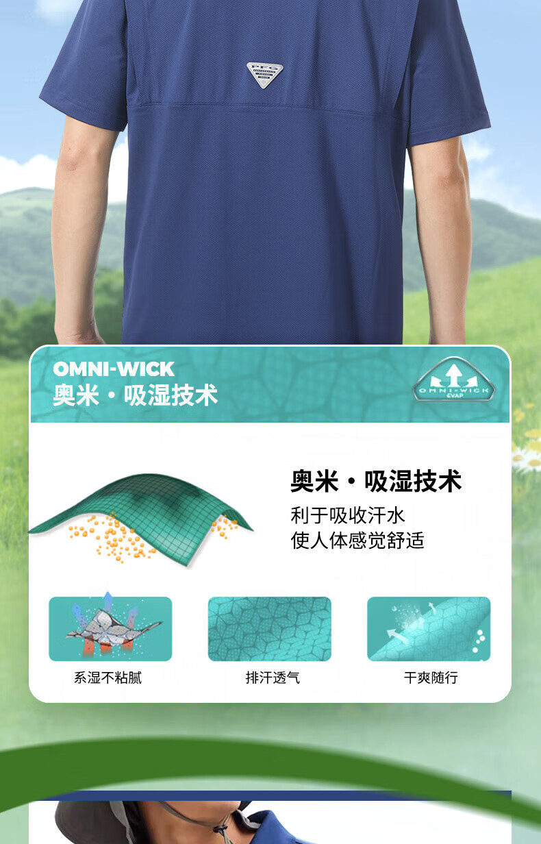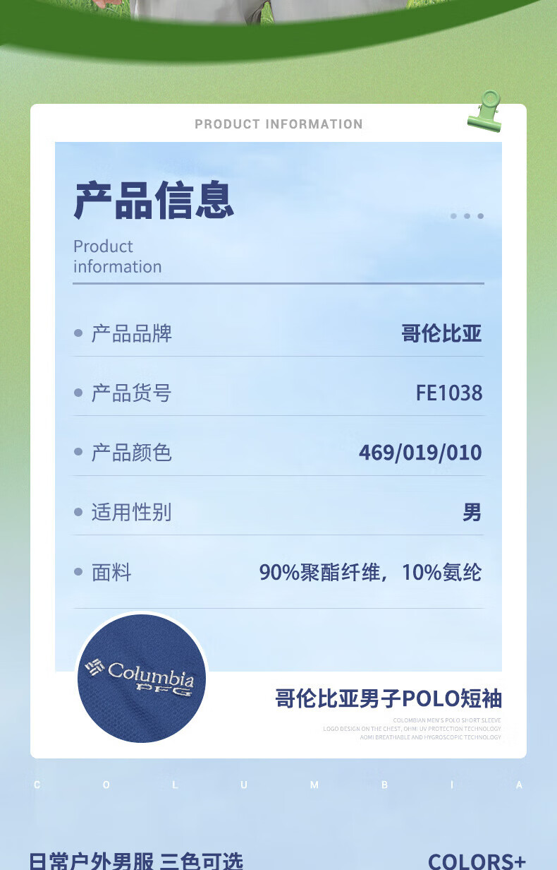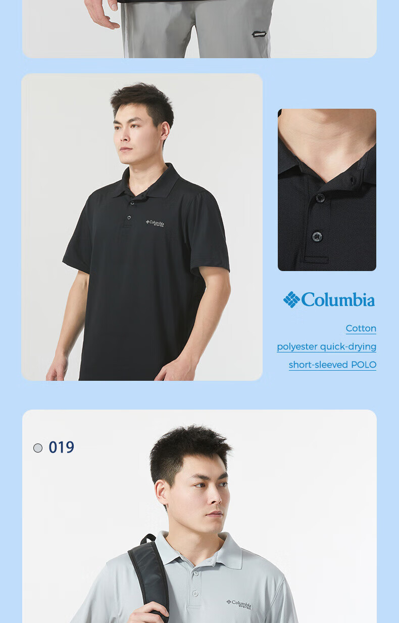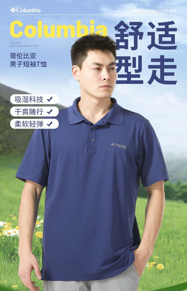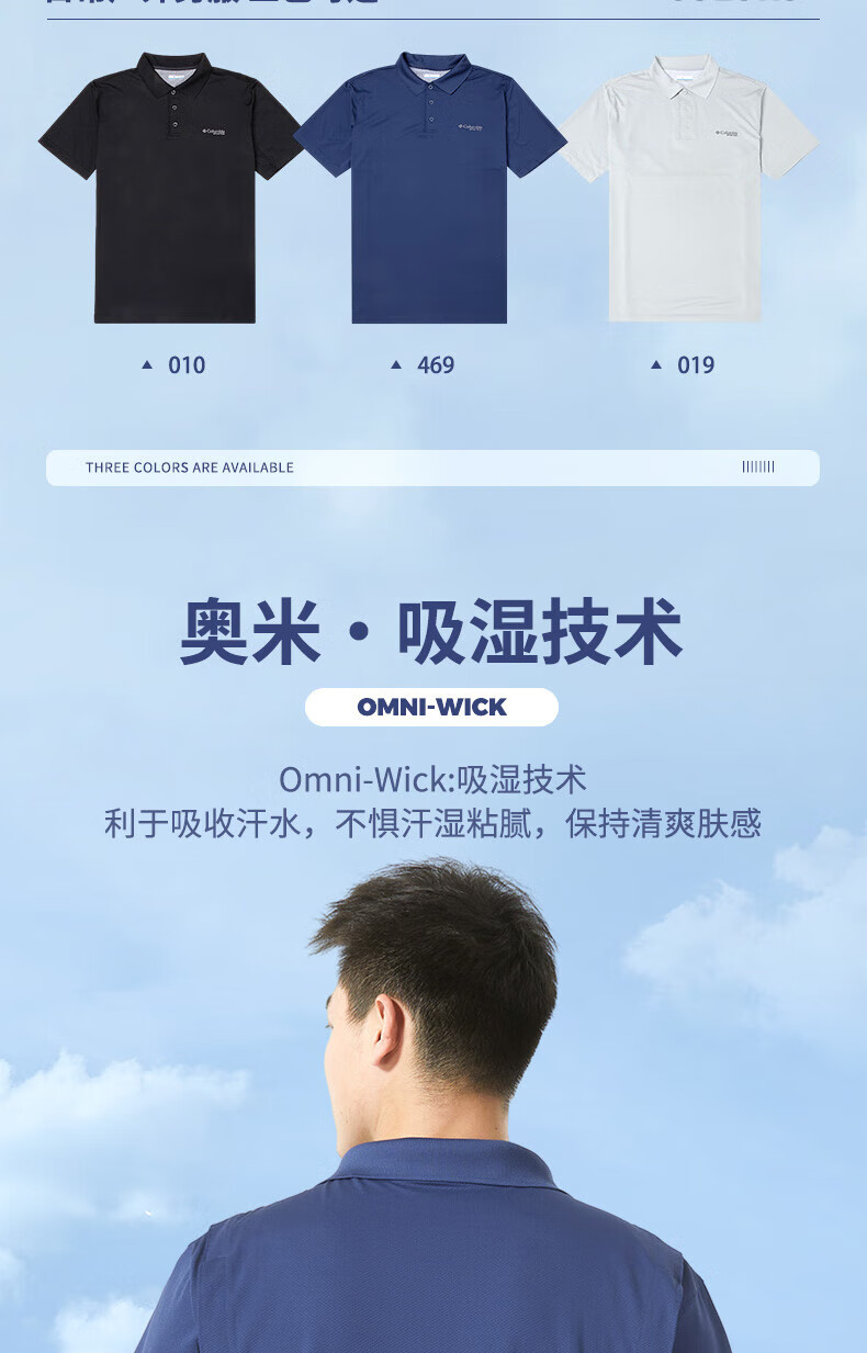 Columbia outdoor spring and summer new men's fishing series quick-drying breathable short-sleeved POLO shirt FE1038 455 blue 2XL/190/104A