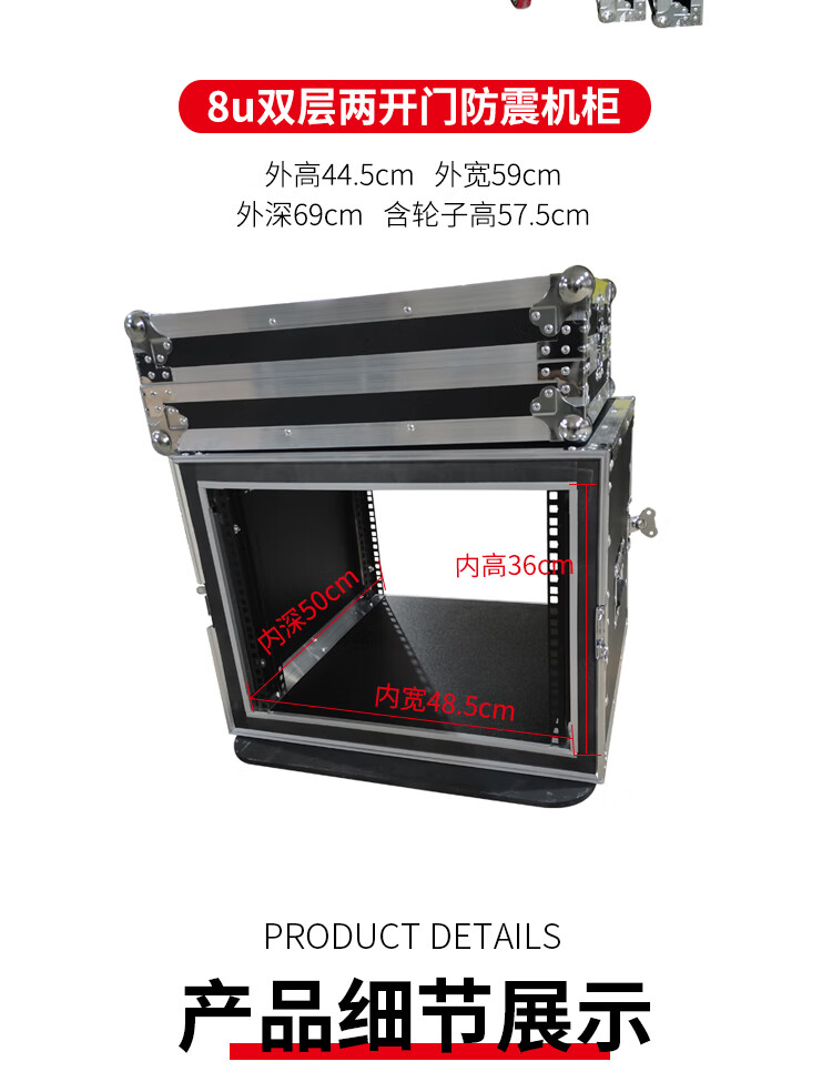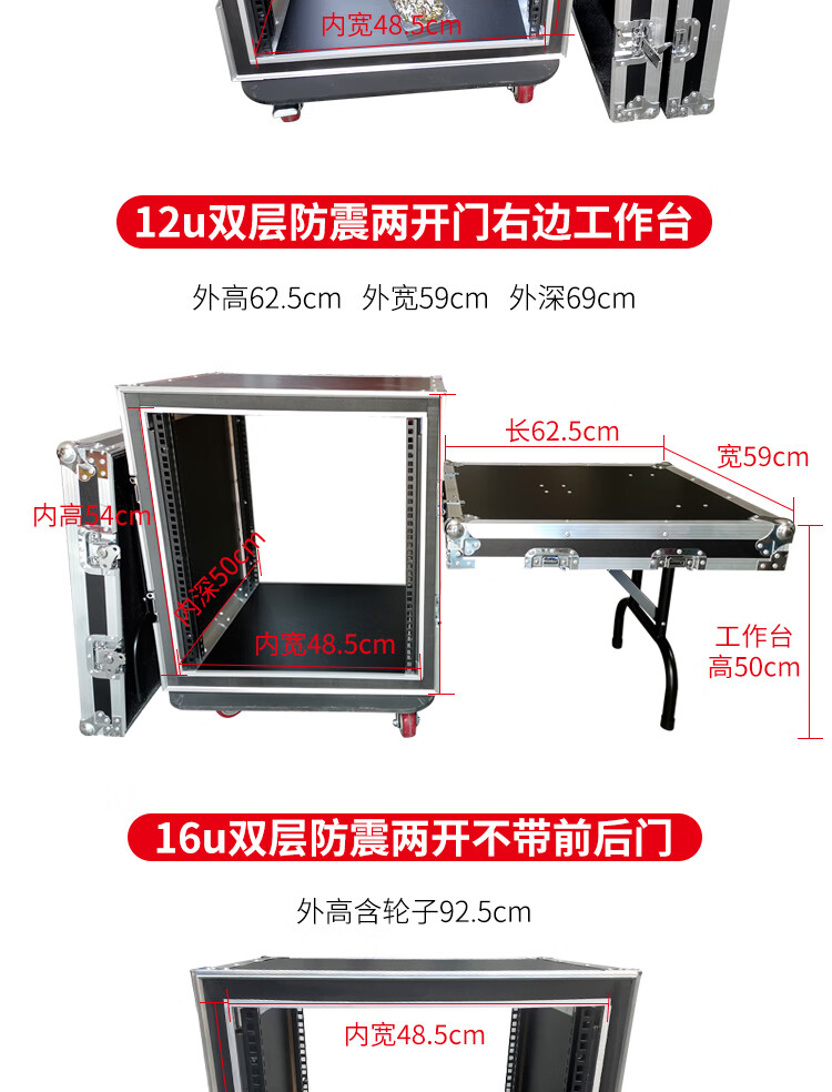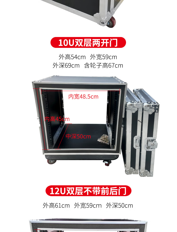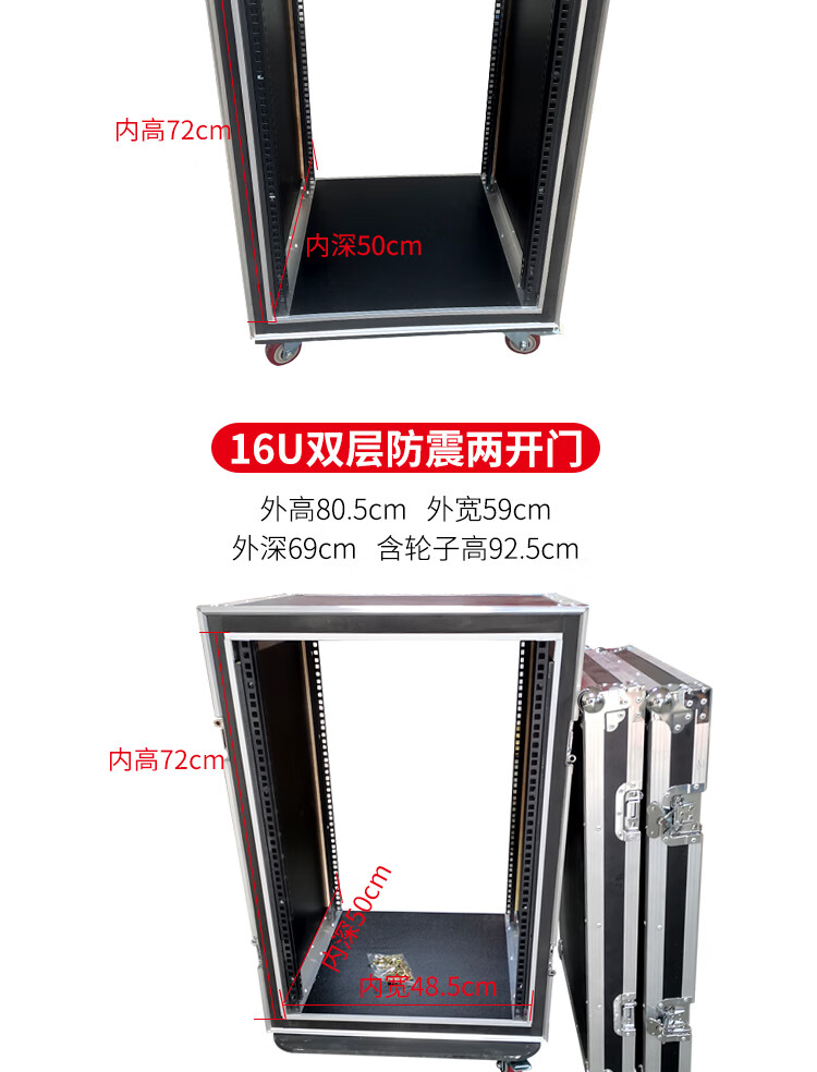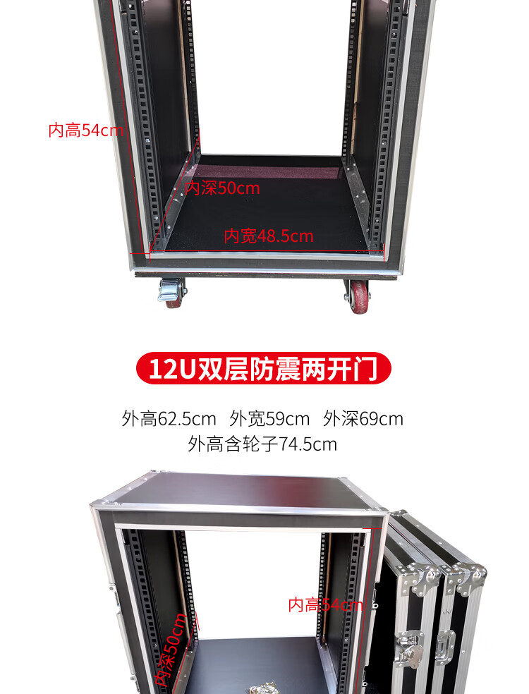 Professional 12U16U two-door flight case cabinet power amplifier flight case audio cabinet mixer cabinet shock-proof cabinet 12U double-layer shock-proof two-door inner height 54cm