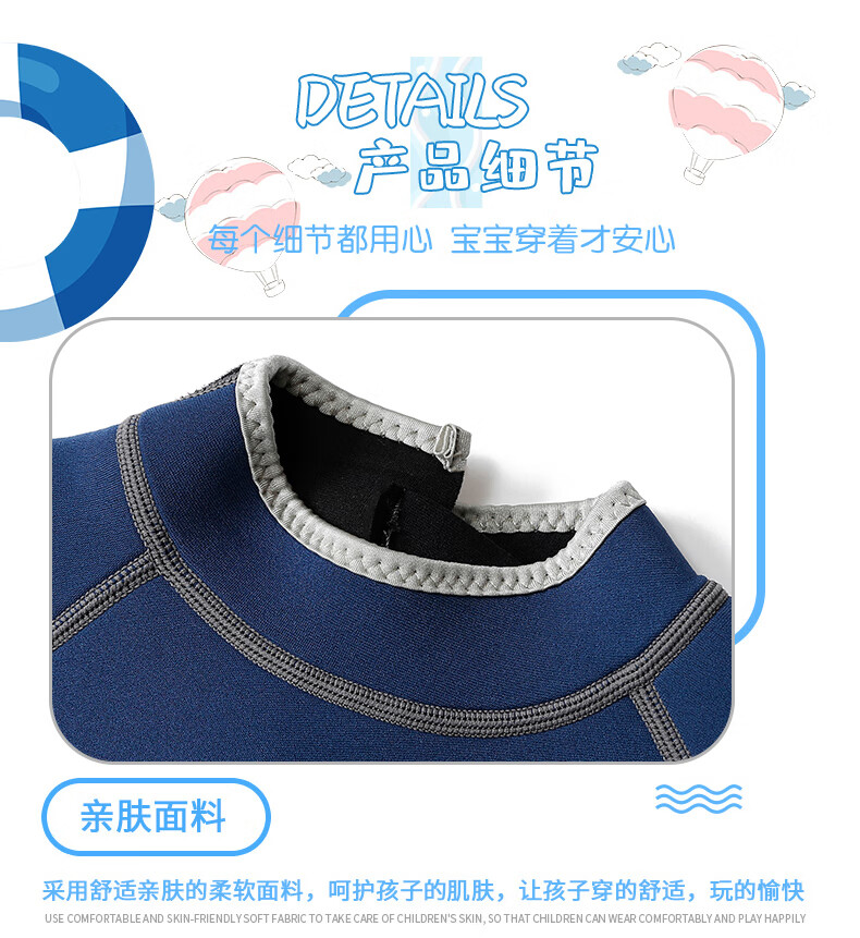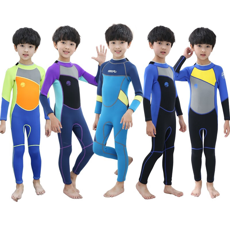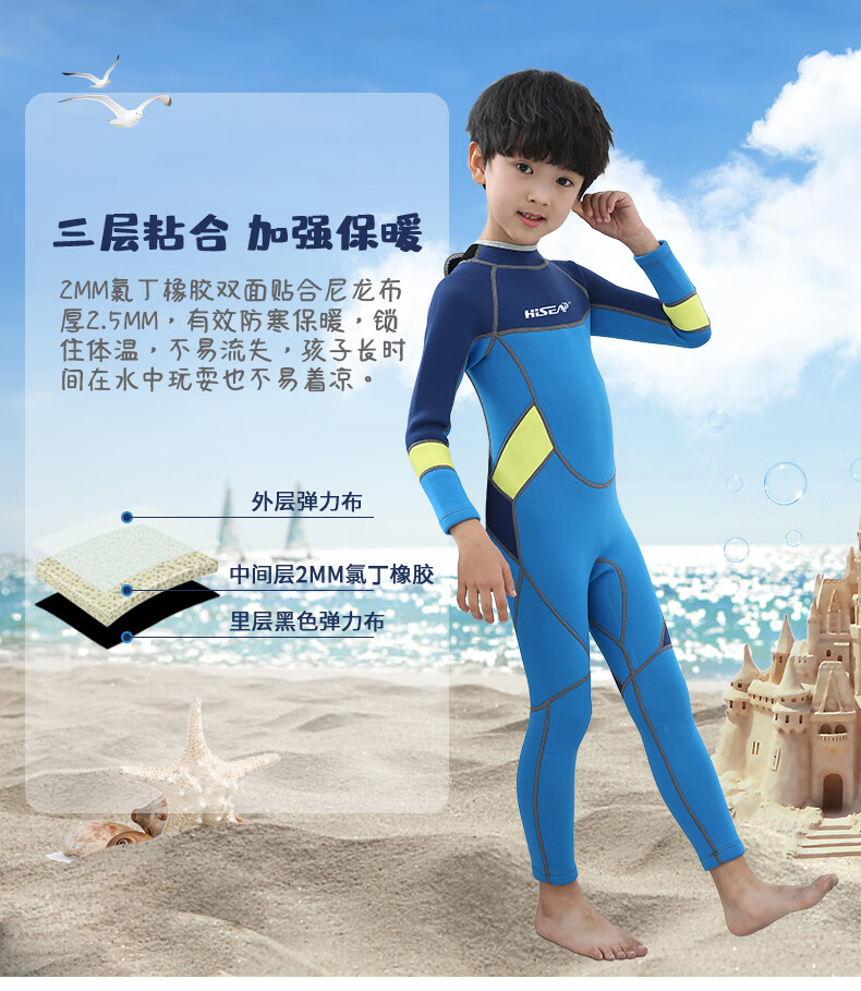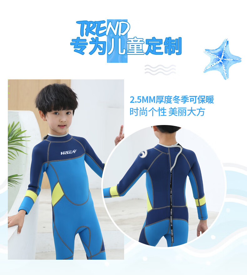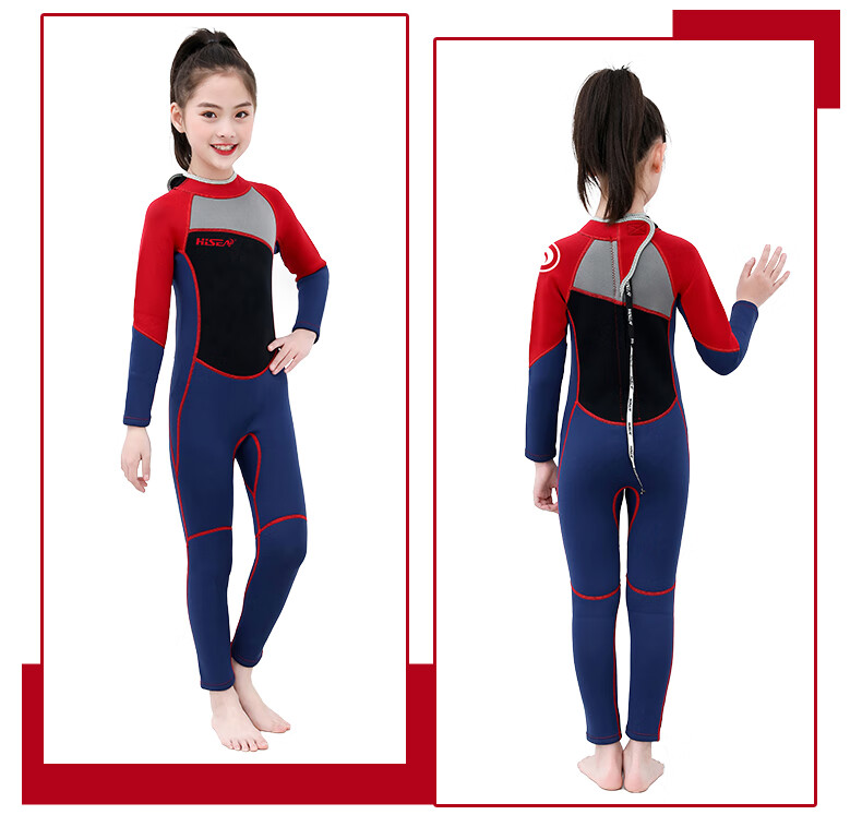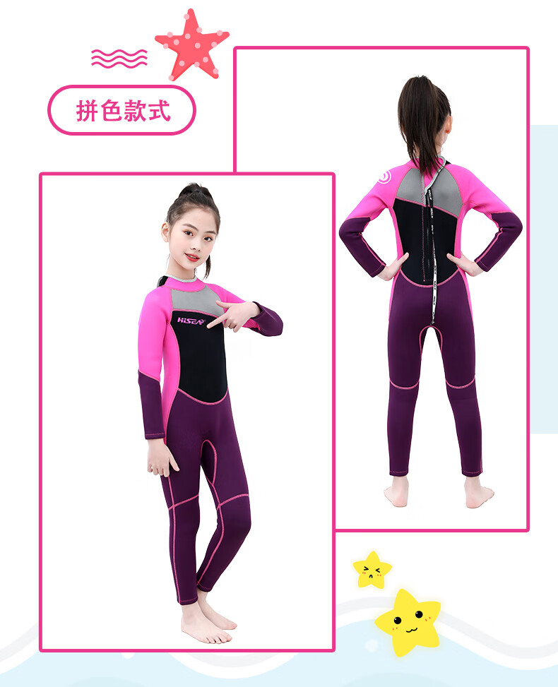 HiSEA children's long-sleeved swimsuit sun protection and warm one-piece beach swimsuit new product M105 rose red blue XXS _2#