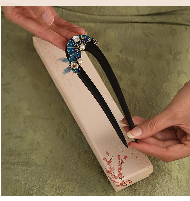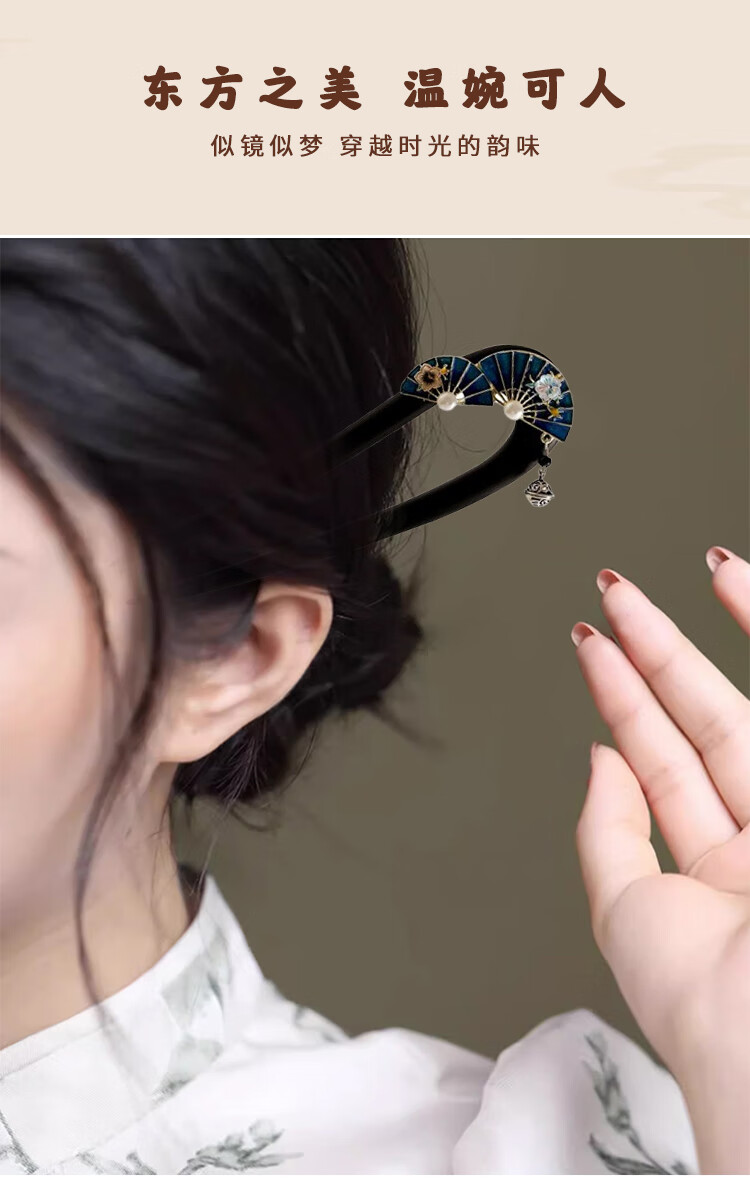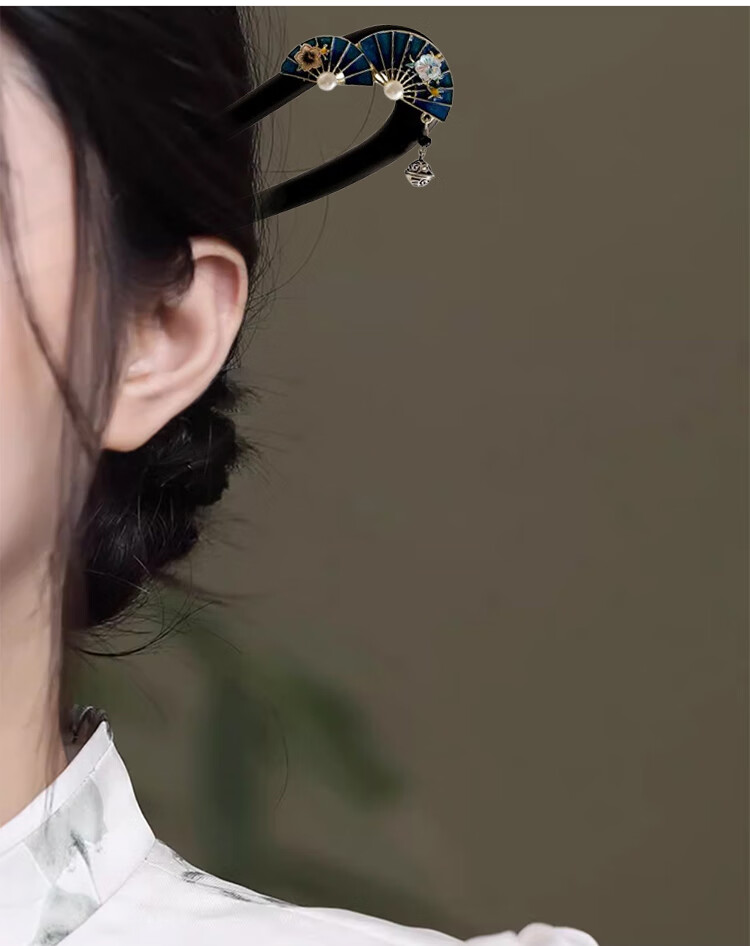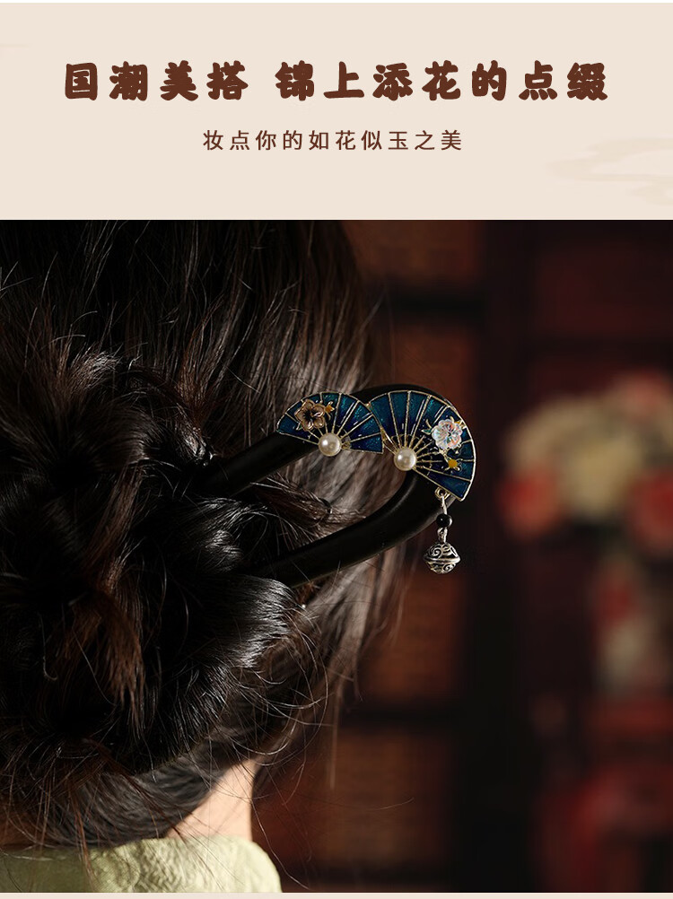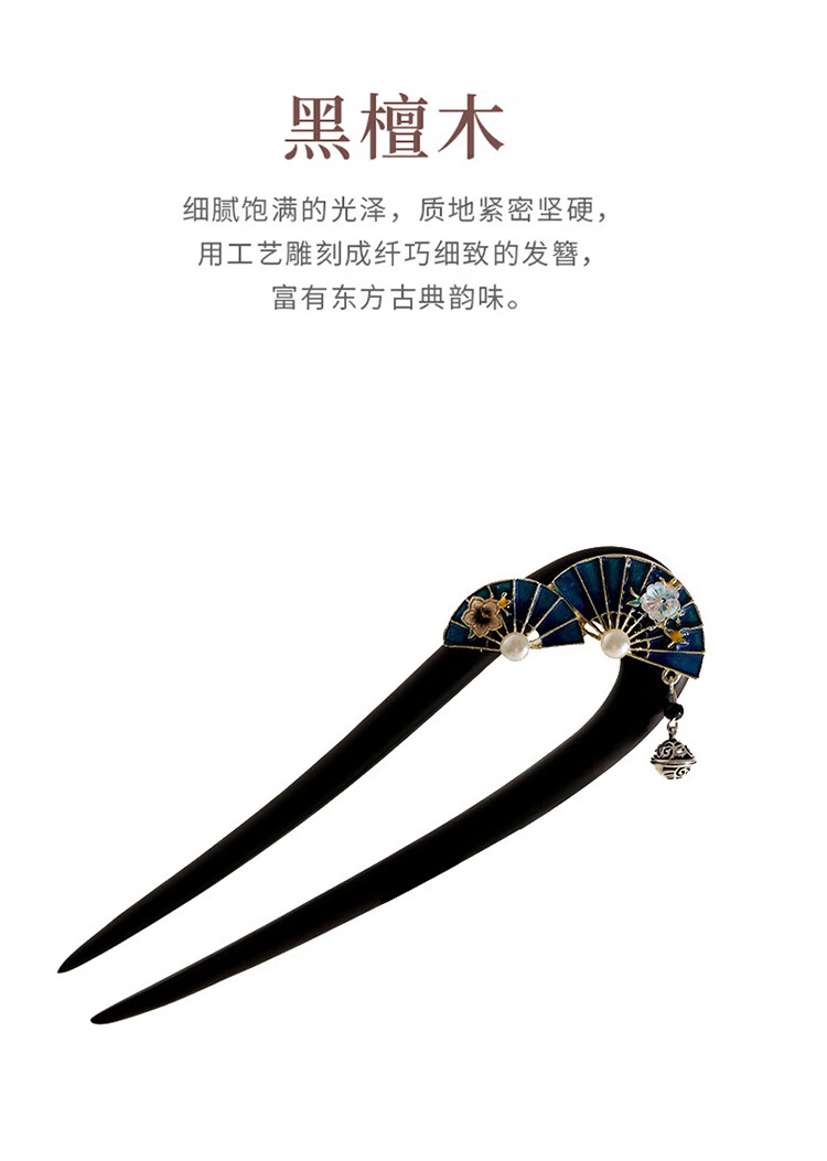 Su Shiliu's classical ethnic style black sandalwood hairpin, new Chinese style retro hairpin, hairpin, birthday gift for girlfriend, double fan bell, sandalwood hairpin