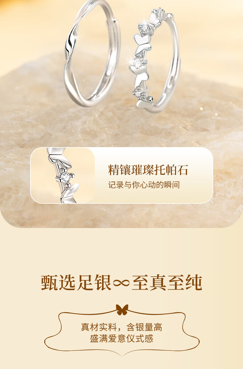 China Gold (CHINA GOLD) Light Luxury Mobius Couple Ring Pure Silver Butterfly Love Ring Birthday Gift for Girlfriend and Wife Wedding Anniversary Pure Silver Mobius Love Couple Ring - Jingsuda