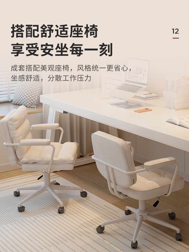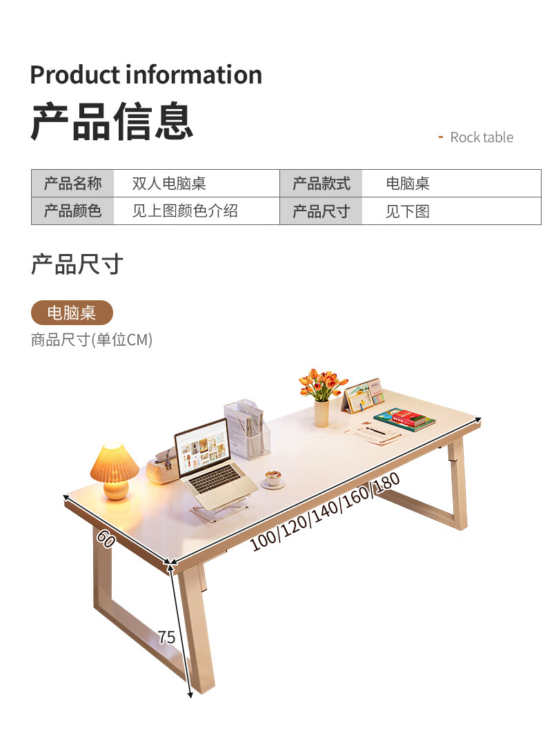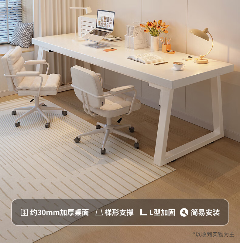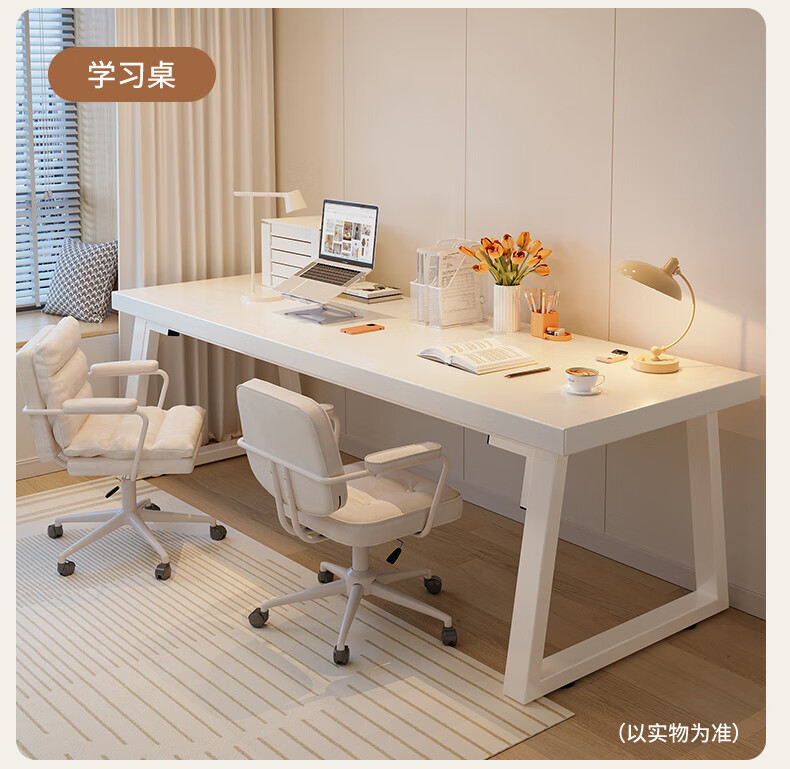 Saishan computer desk workbench double desk study table student home bedroom simple white office writing long table 30MM table welfare model single table cream white 100