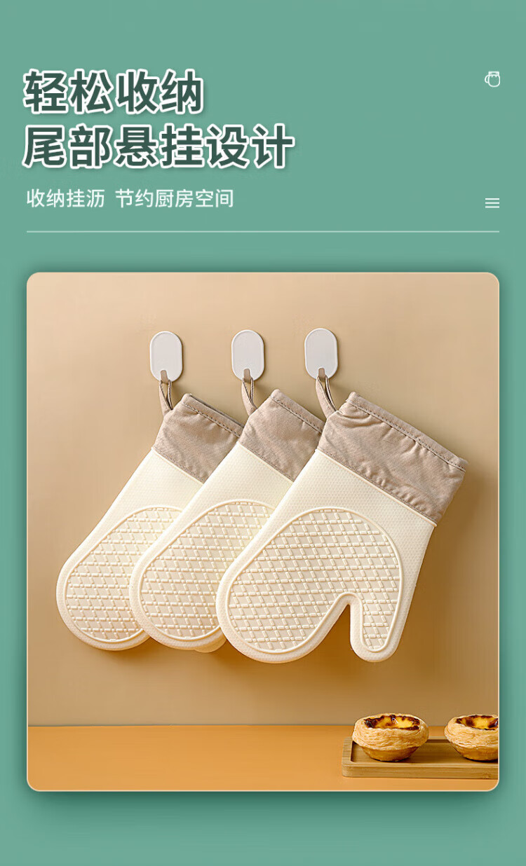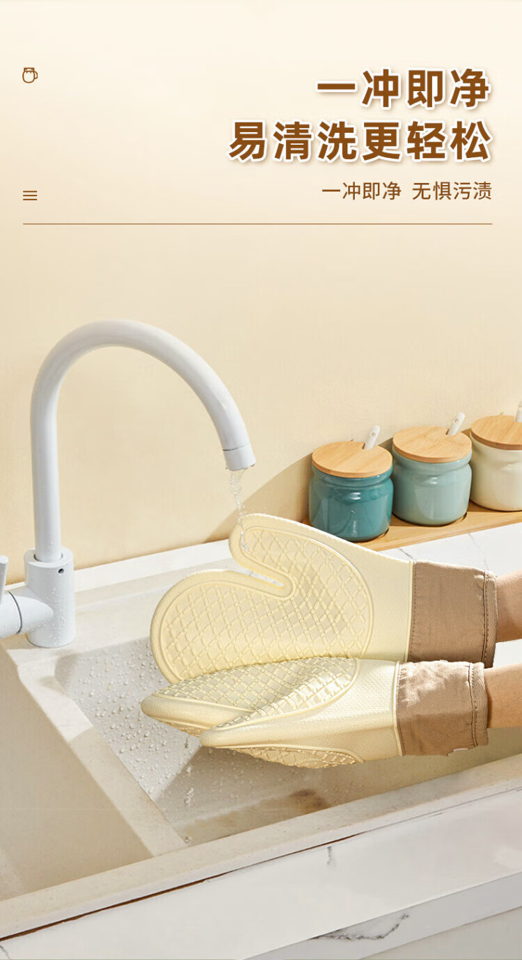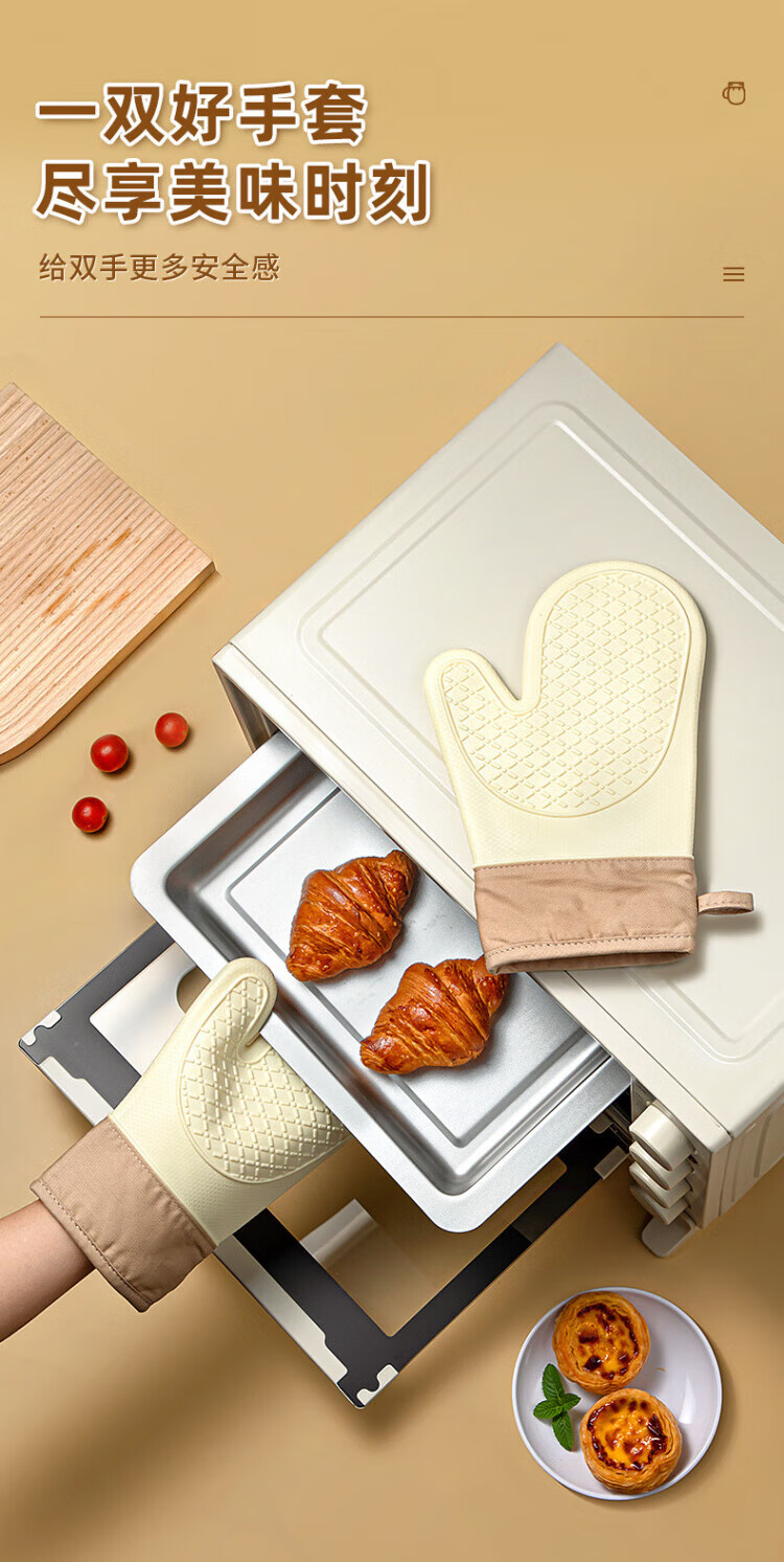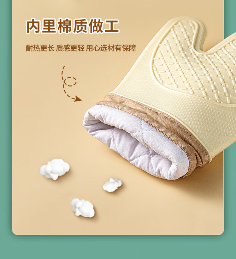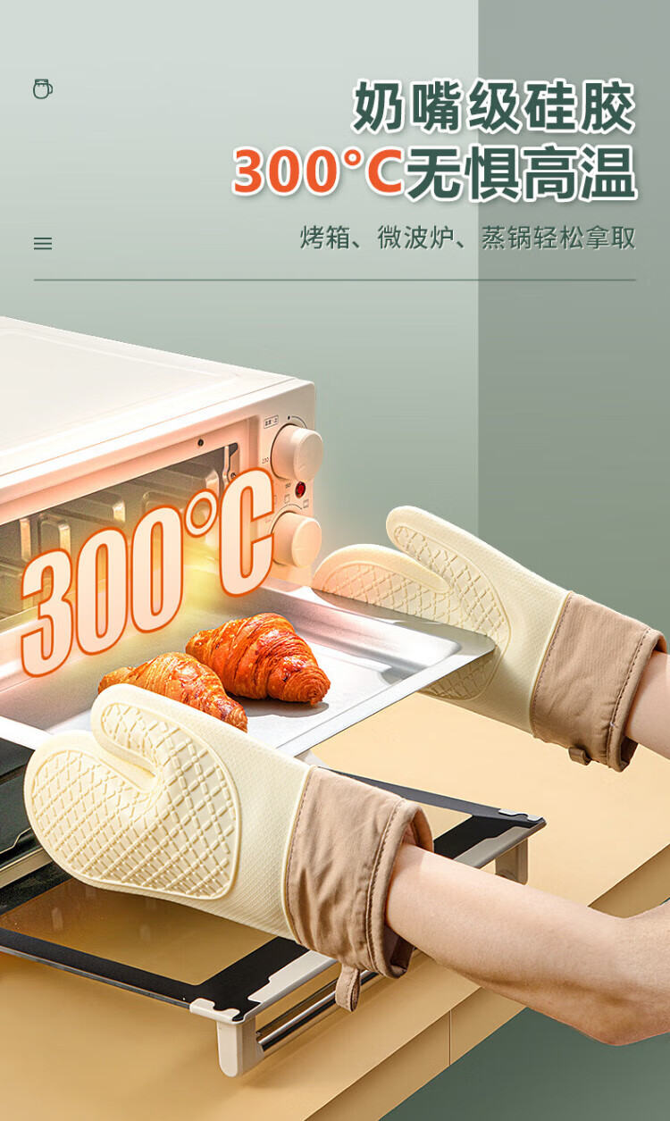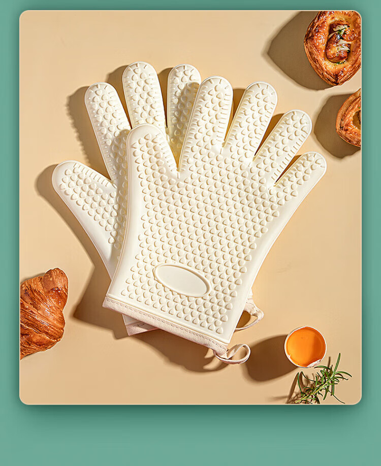 Ai Style Thickened High Temperature Resistant Silicone Oven Gloves Insulated Anti-scalding Kitchen Baking Tools Microwave Suitable Cute Design Two Fingers - Off-White 1 Pack Heat Resistant 300 Degrees