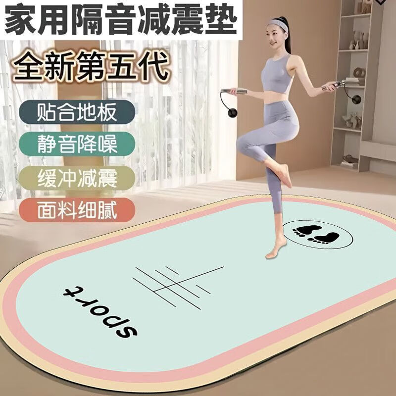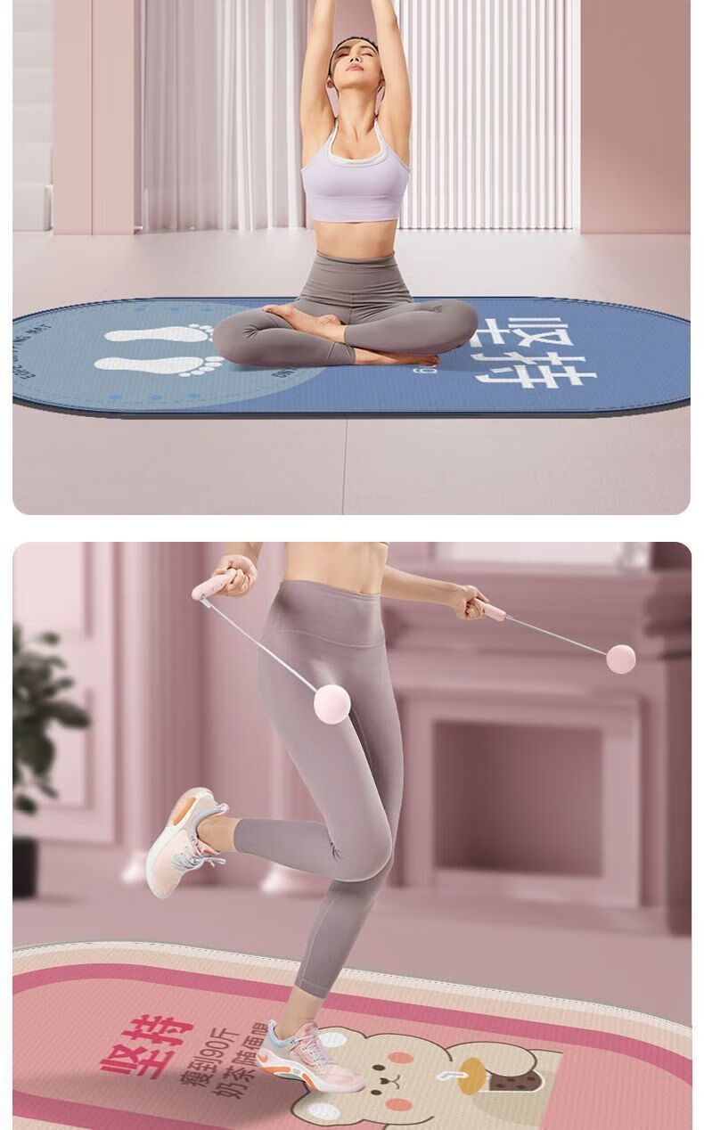 Shushe jump rope yoga mat, soundproof and shock-absorbing, indoor sports, non-slip grip, thickened aerobics, Pilates, fitness dance mat, anti-slip, shut up, dedicated for fat loss and fitness, 80X180CM, anti-slip, stain-resistant, sweat-absorbent
