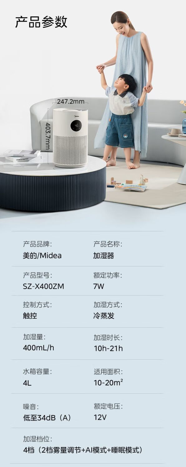 MeiLing fog-free humidifier new fog-free home baby light sound bedroom air smart SZ-X400ZM