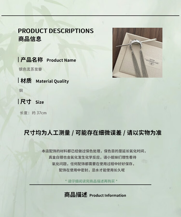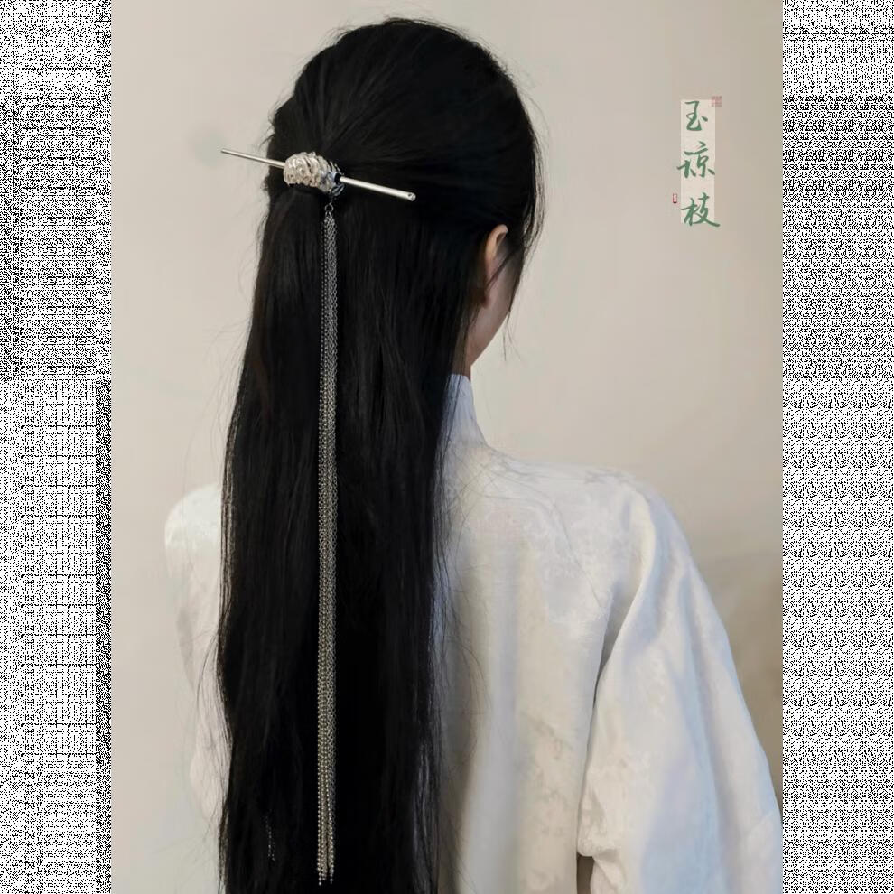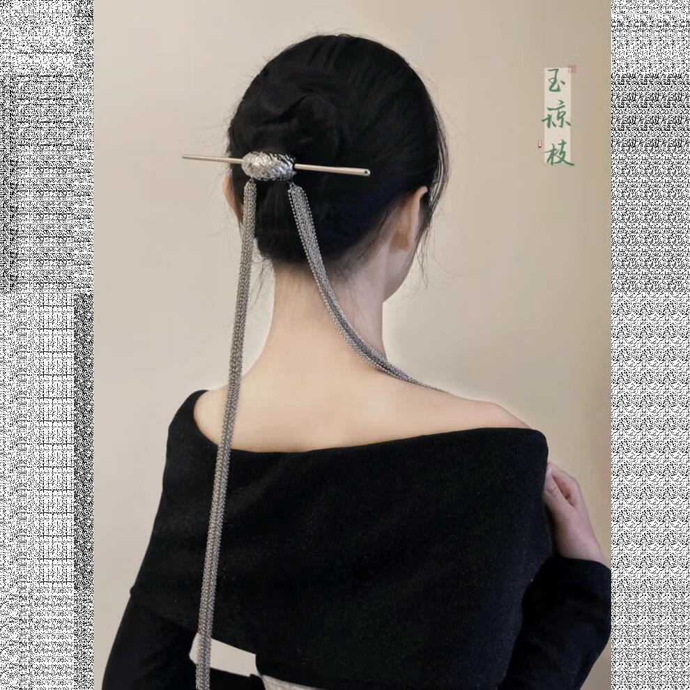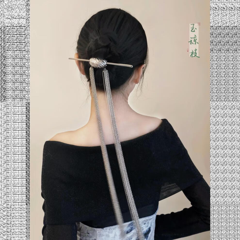 Shijun (SHIJUN) Gao Ying and Wan Qian's same style half-tied tassel hairpin new Chinese style retro national style hairpin hair accessories fashion accessories silver tassel hairpin