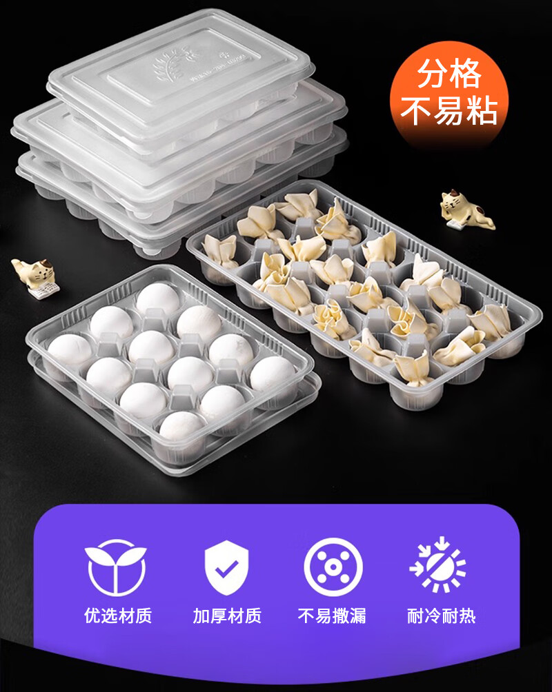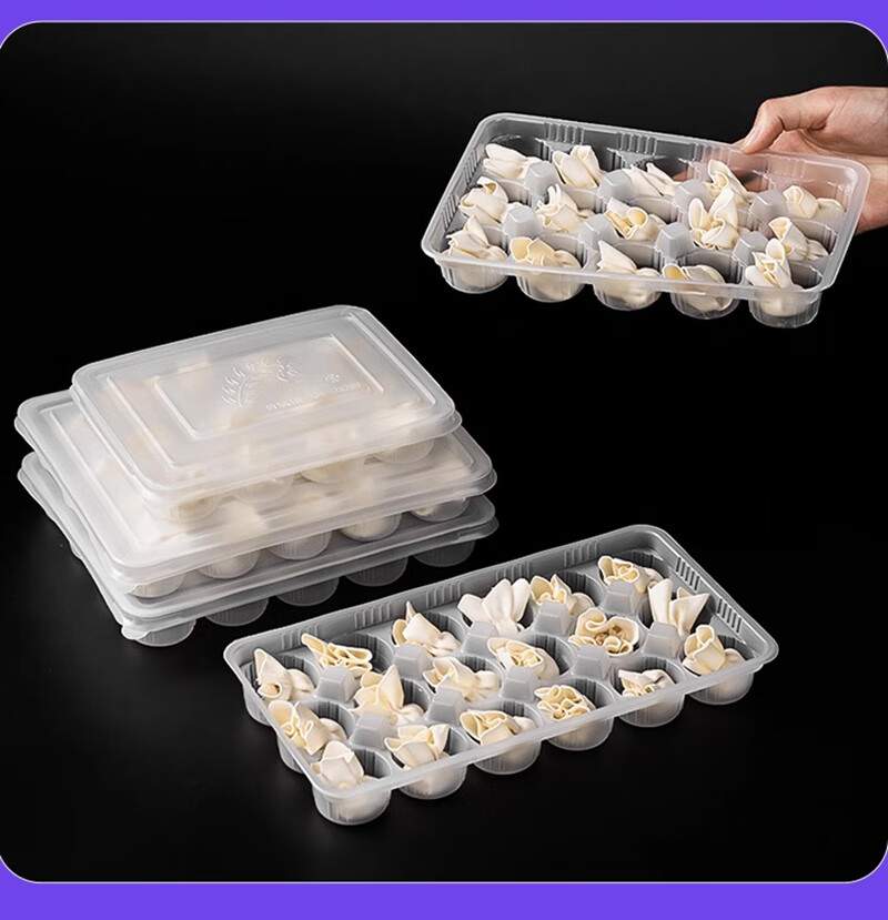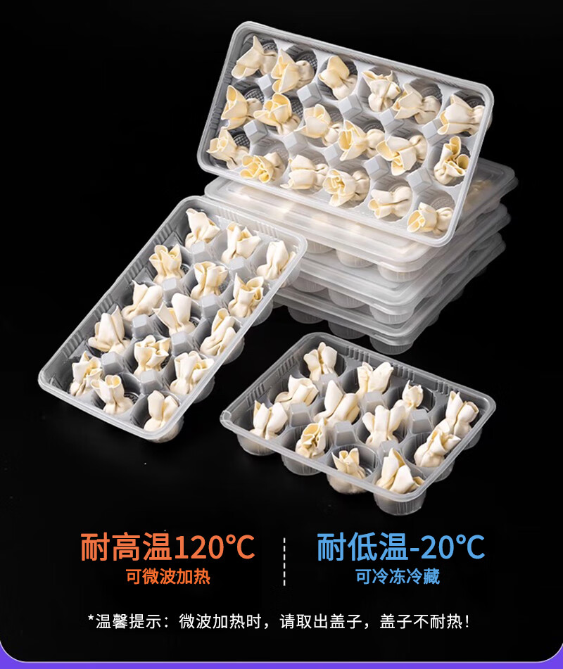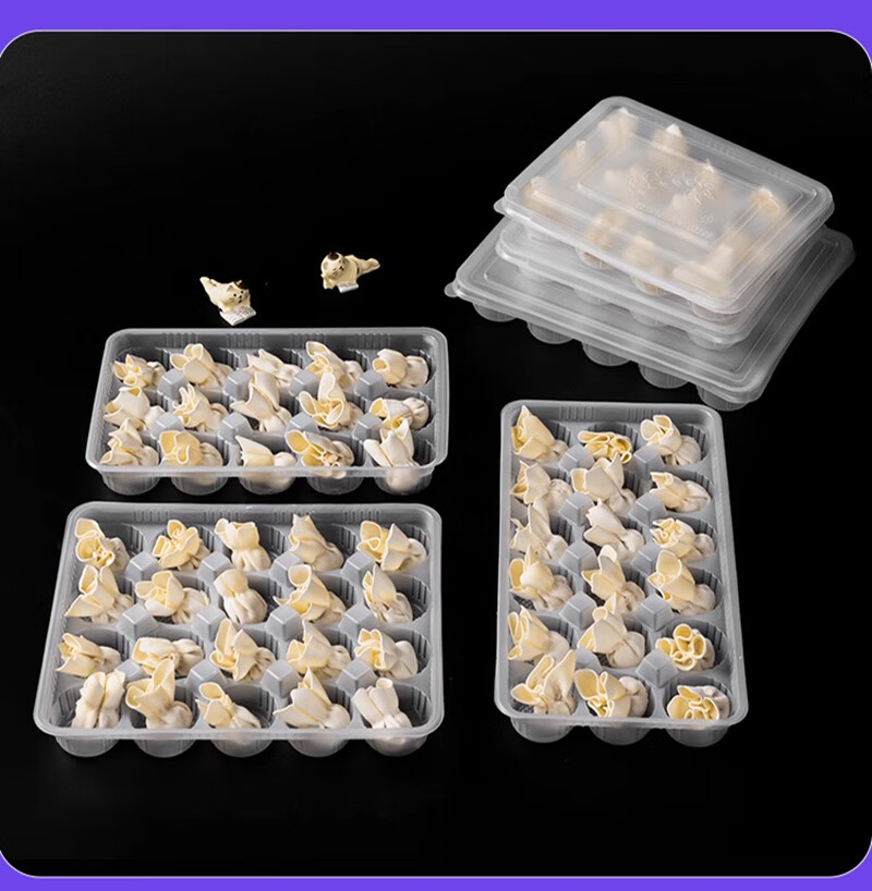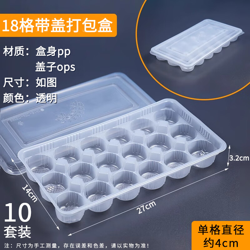 Jingju Raw Wonton Packing Box Frozen Wonton Stewed Chaos Xiao Long Bao Ice Rice Ball Wonton Storage Disposable Takeaway Box 18-grid Raw Wonton Packing Box with Lid 10 Sets