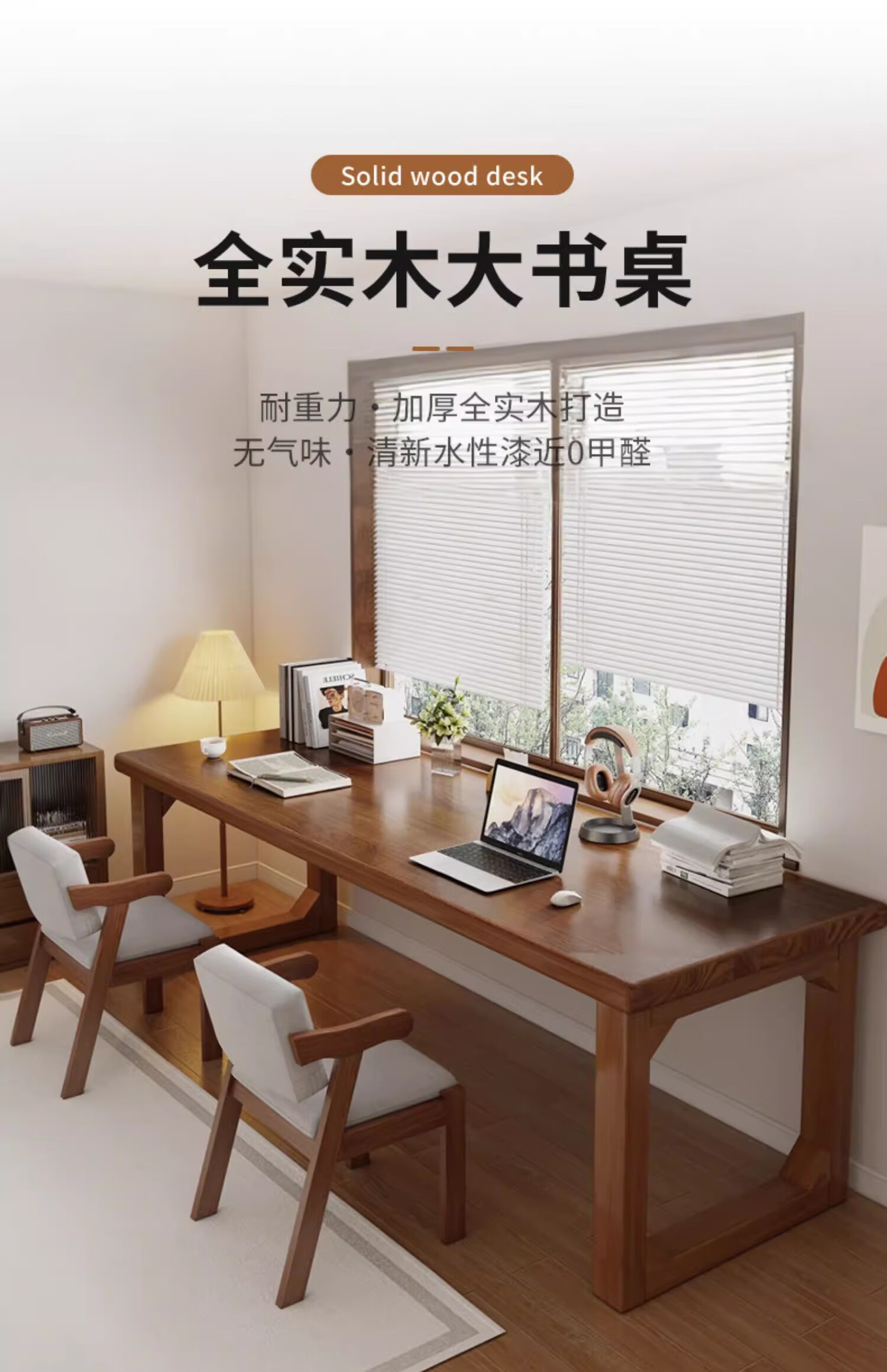 Mansfield solid wood computer desk double simple office desk living room long book table workbench student home writing desk 3CM solid wood hot sale light walnut color 120cm