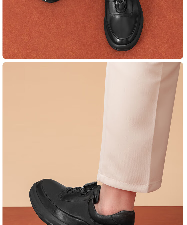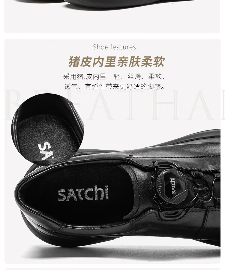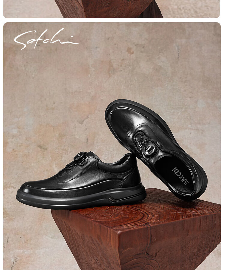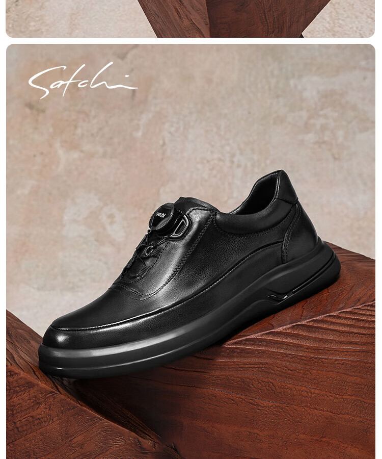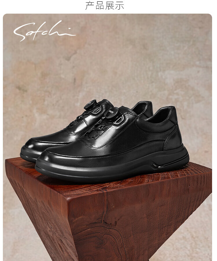 SATCHI men's shoes with swivel buckles, business casual leather shoes, men's sneakers, cowhide, versatile, comfortable, non-slip, wear-resistant, slip-on leather shoes, black 40, one size larger than sports shoes