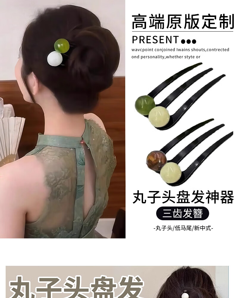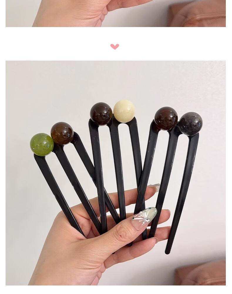 Koti high-end three-tooth beaded U-shaped hairpin for daily commuting, ball head hairpin, hairpin on the back of the head, fixed hairpin, beige green