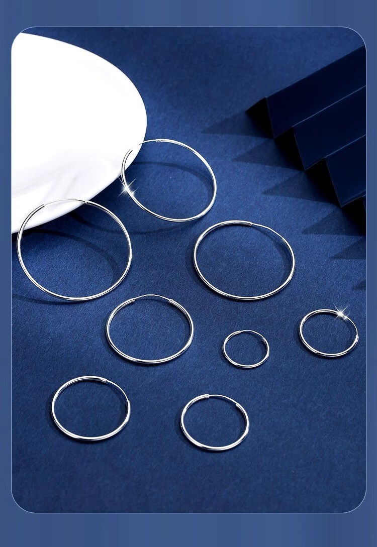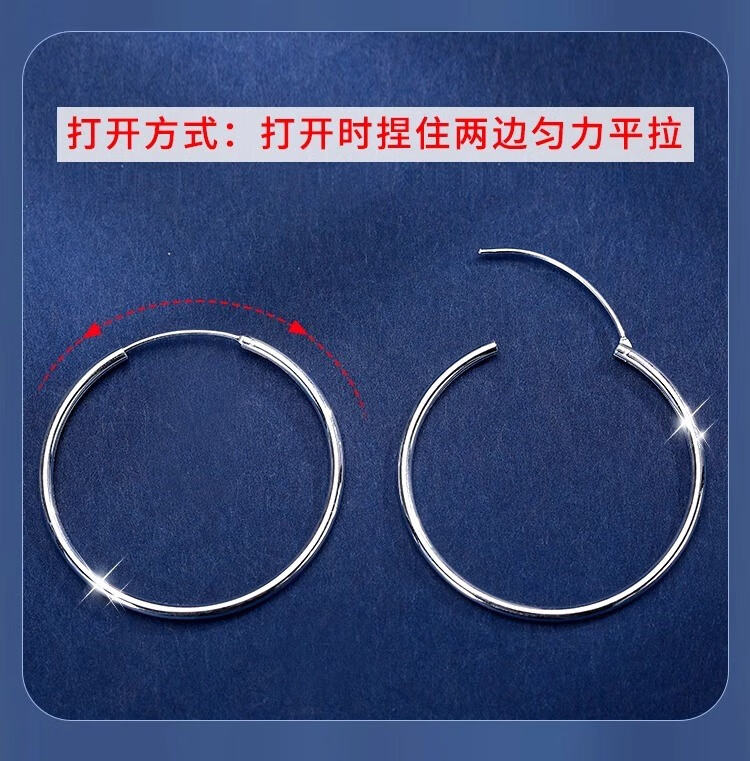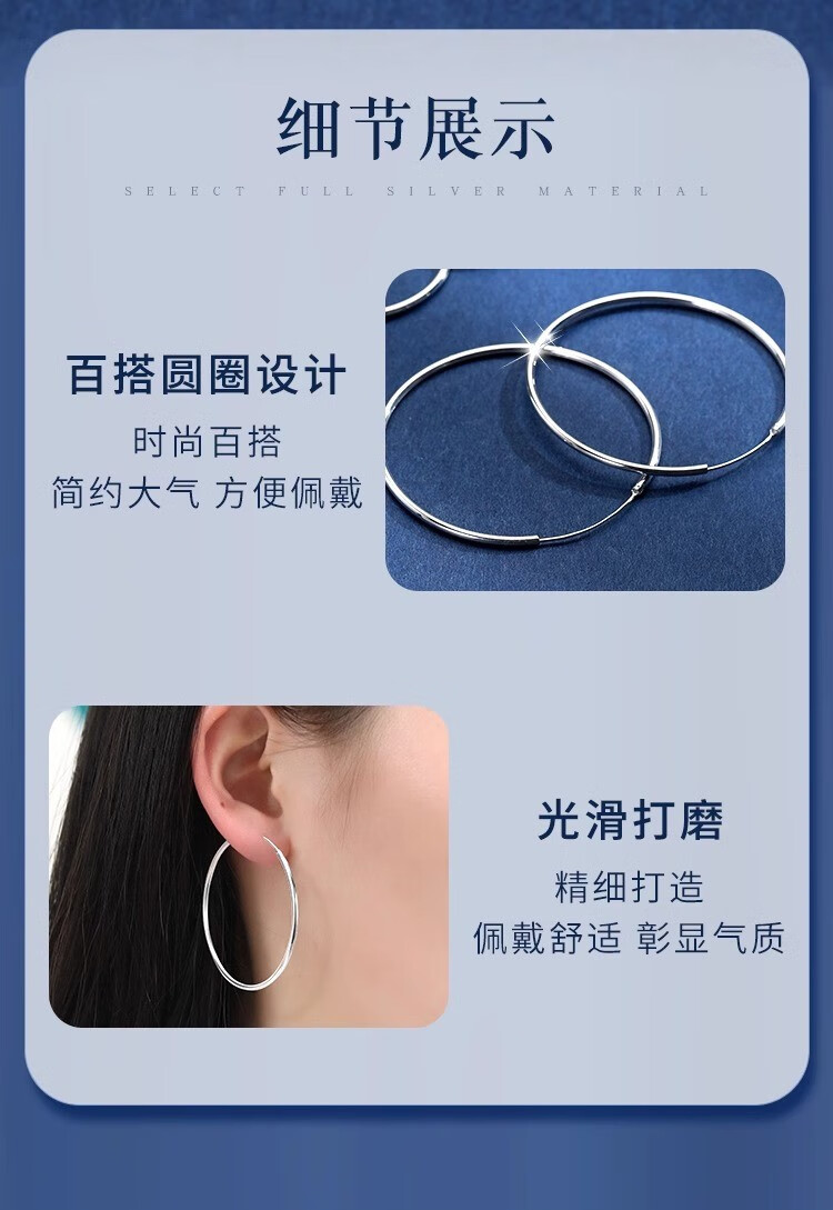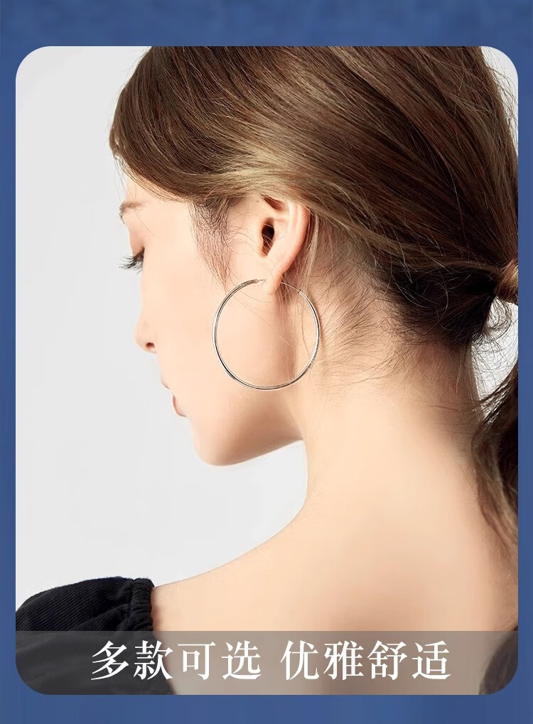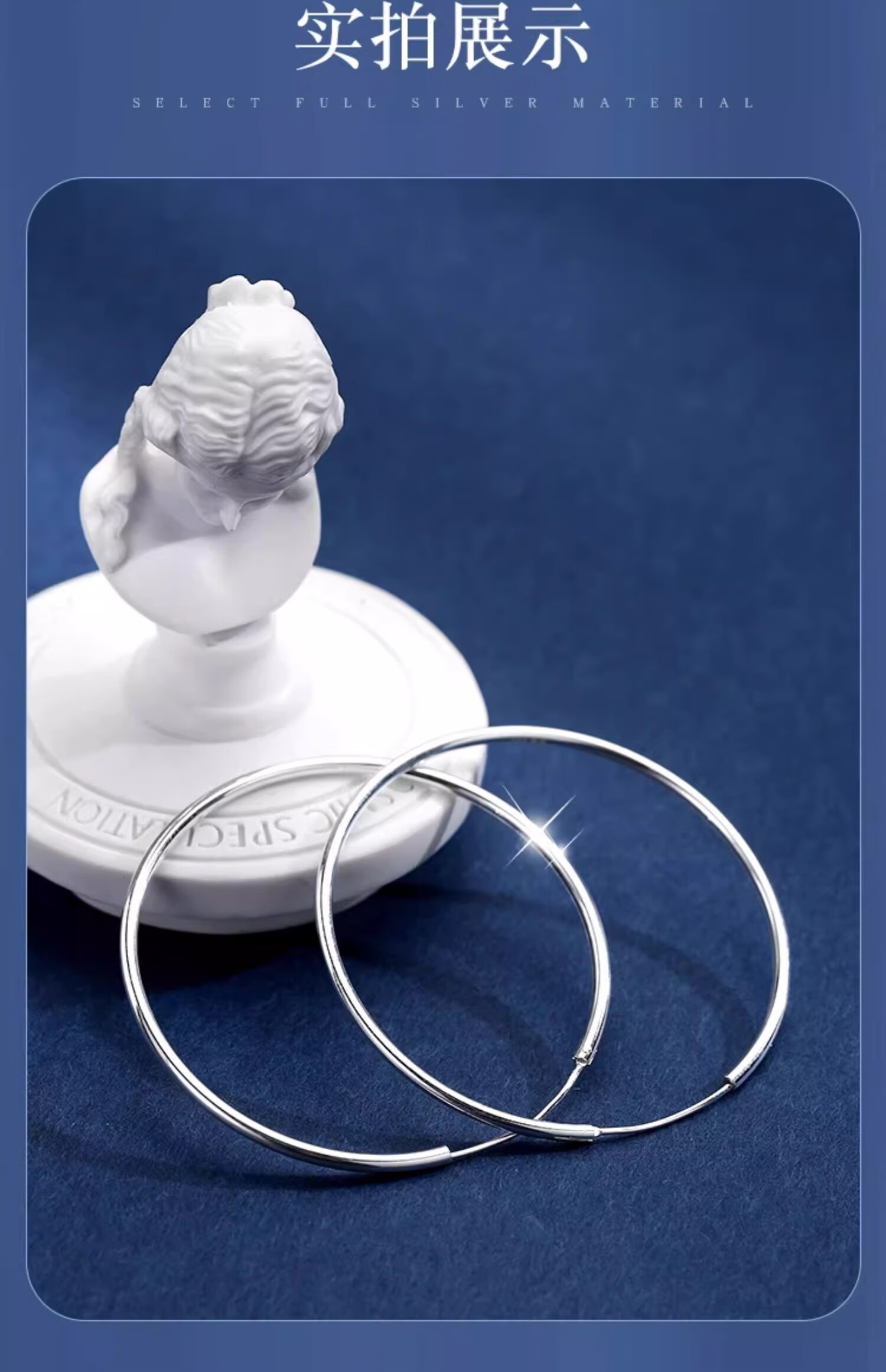Hundred-year-old Huangxiang full-body 999 pure silver earrings for women sterling silver large circle earrings 2025 new style thin round model with a diameter of 3.5cm, compact pure silver 999+ certificate