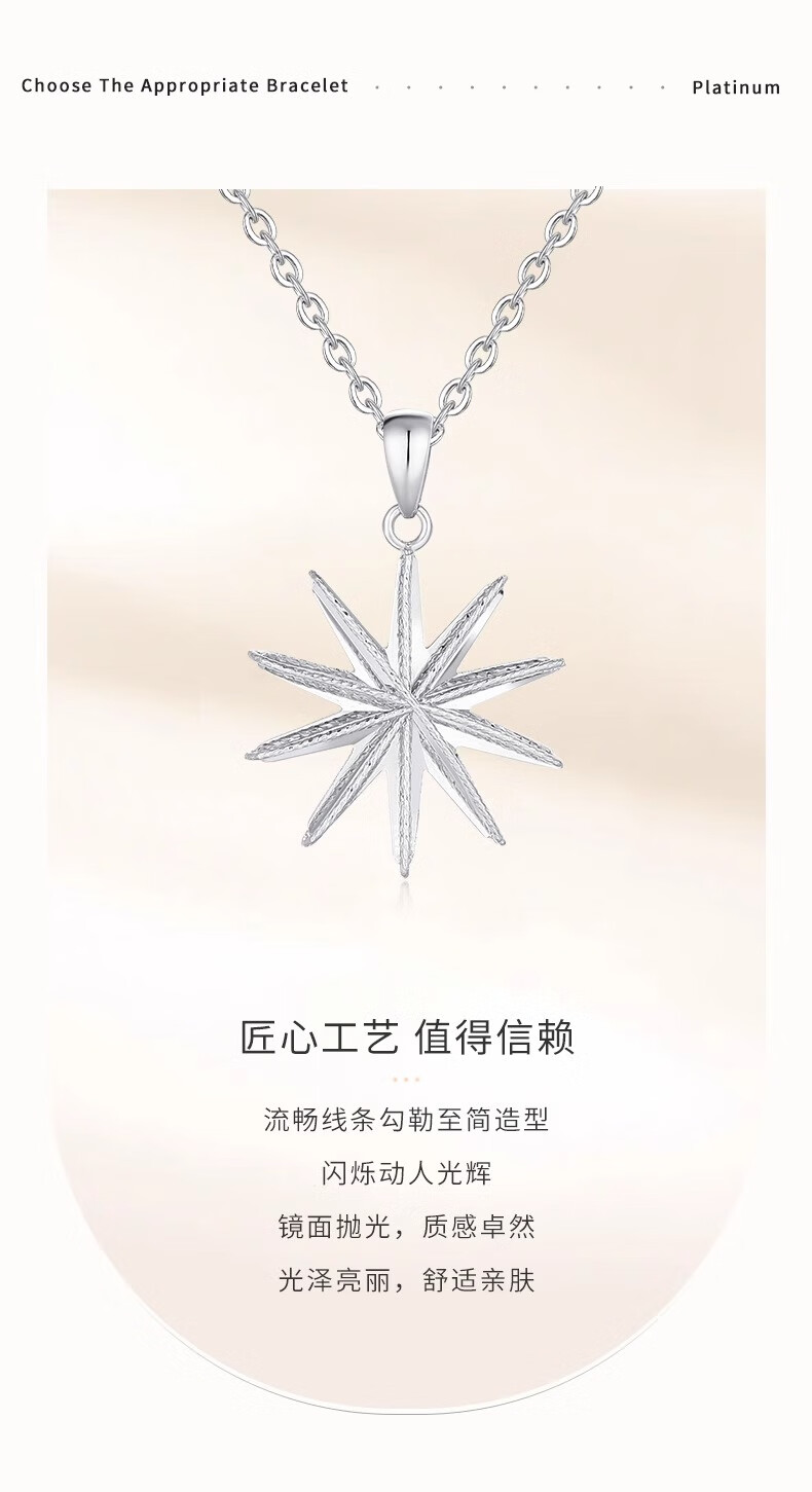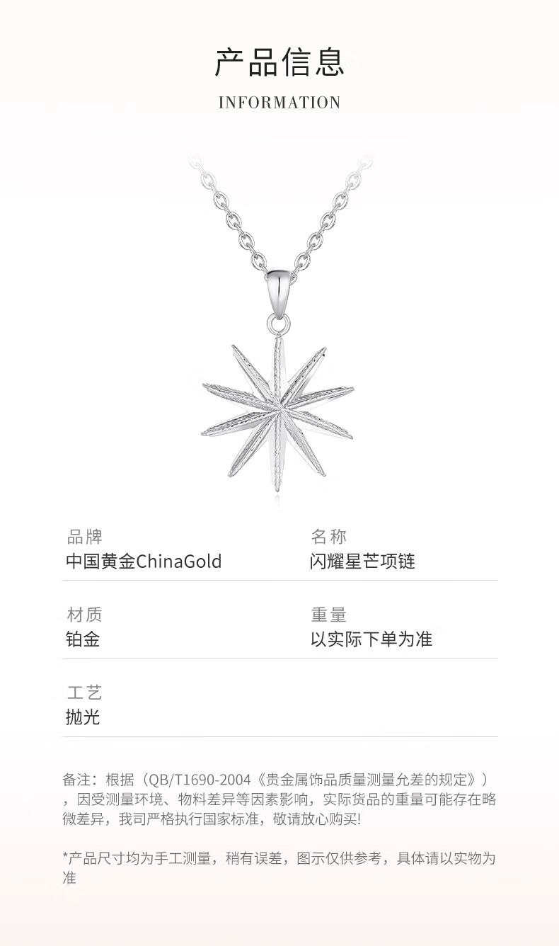 China Gold (CHINA GOLD) PT950 platinum star pendant for women, high-end platinum star Valentine's Day birthday gift for girlfriend and wife. Platinum star pendant about 2.7g, free silver chain + selection gift box