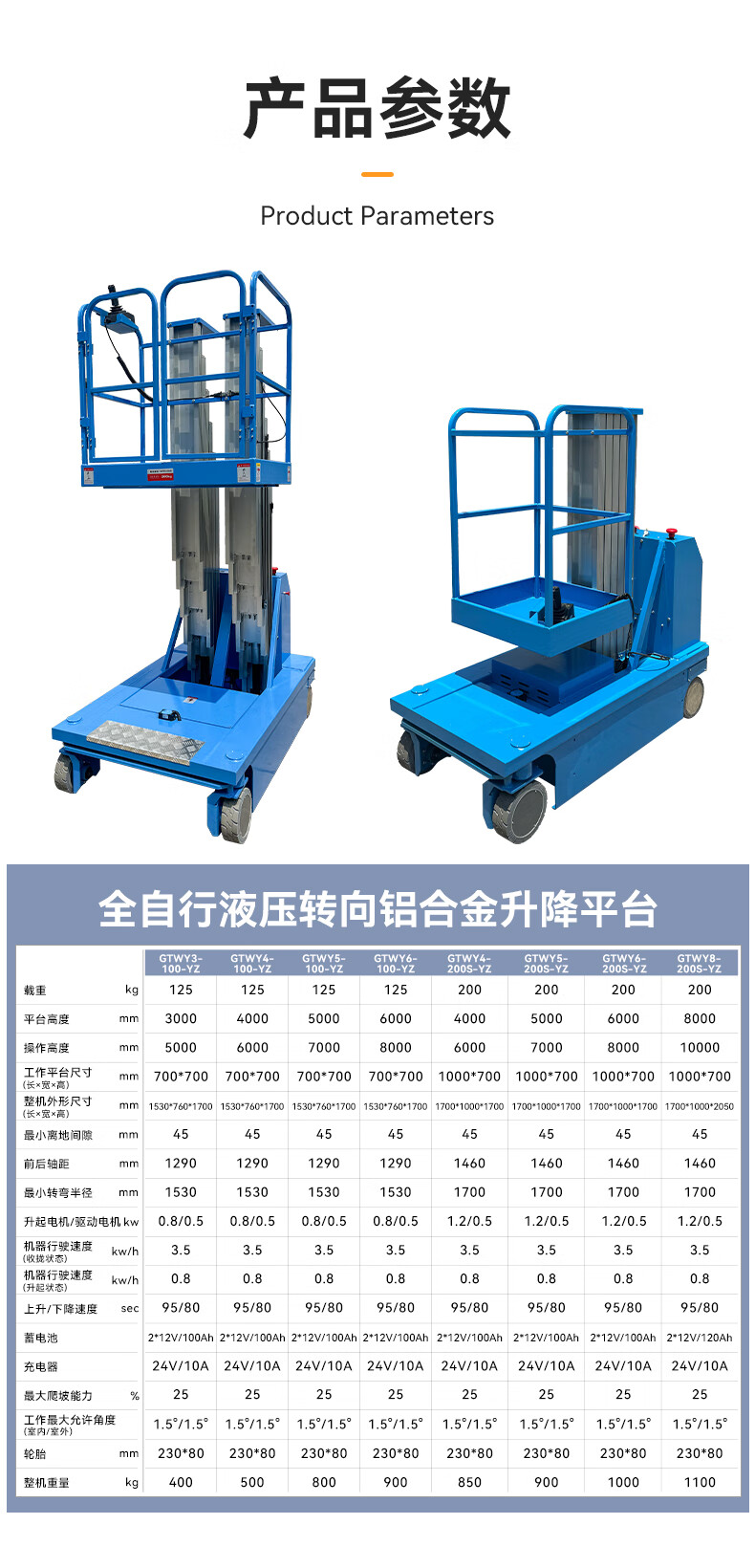 Jiugu 2008 lift fully electric self-propelled aluminum alloy lift hydraulic small lift car climbing car mobile lift table fully self-propelled lift handle