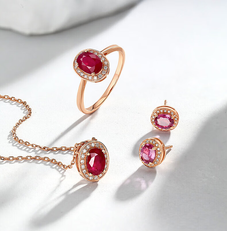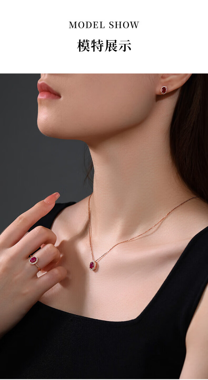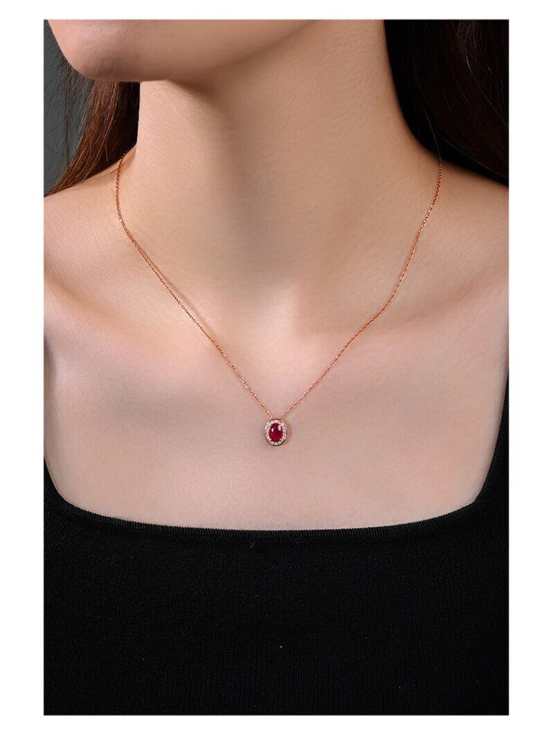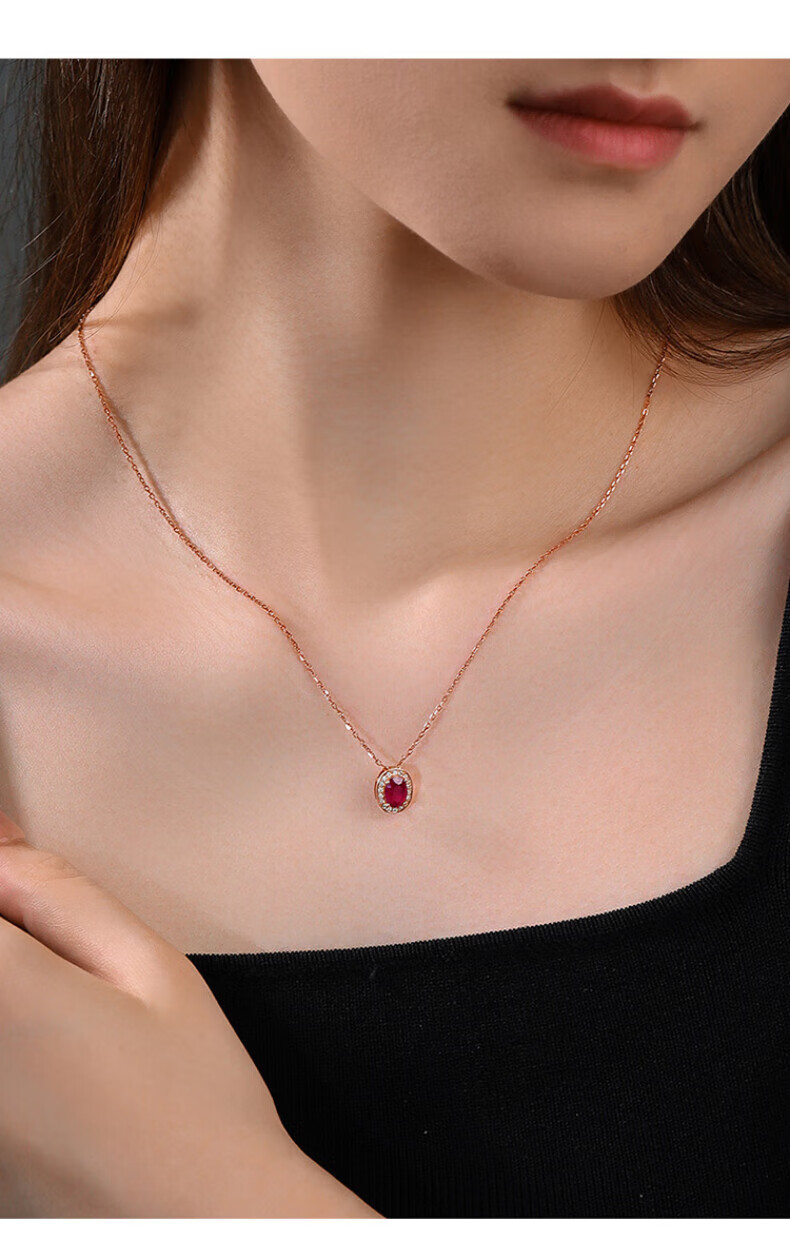 HEEKAIYI Ruby Necklace Women's Colorful 18k Gold Diamond Pendant Chinese Valentine's Day Birthday Gift for Wife and Girlfriend <Supports Customization>