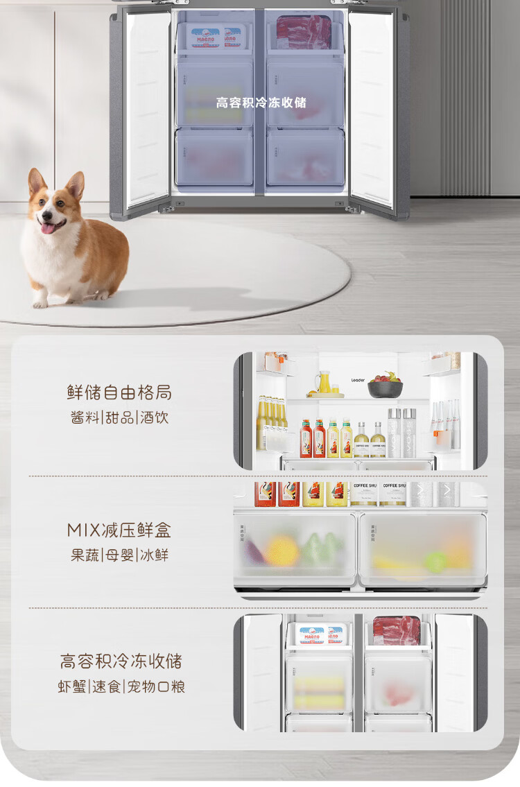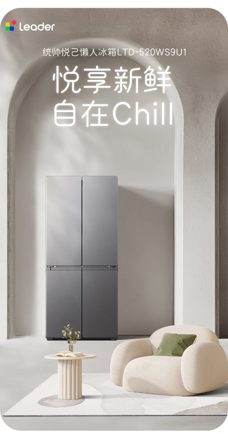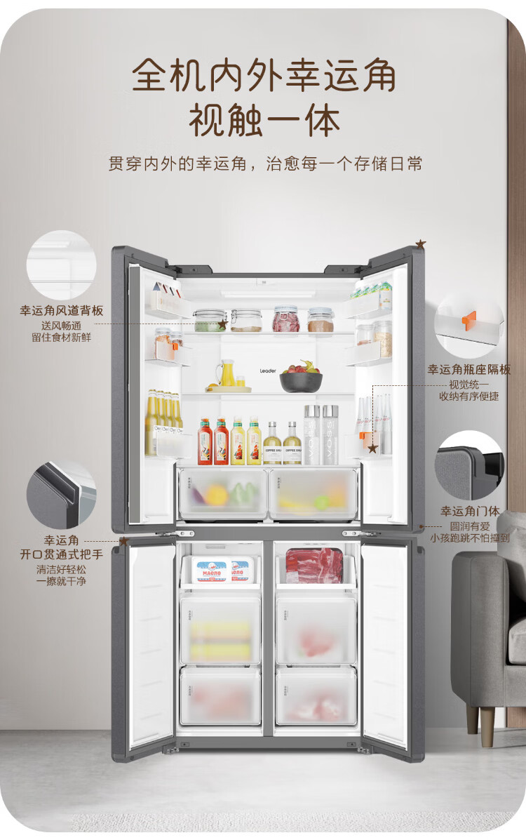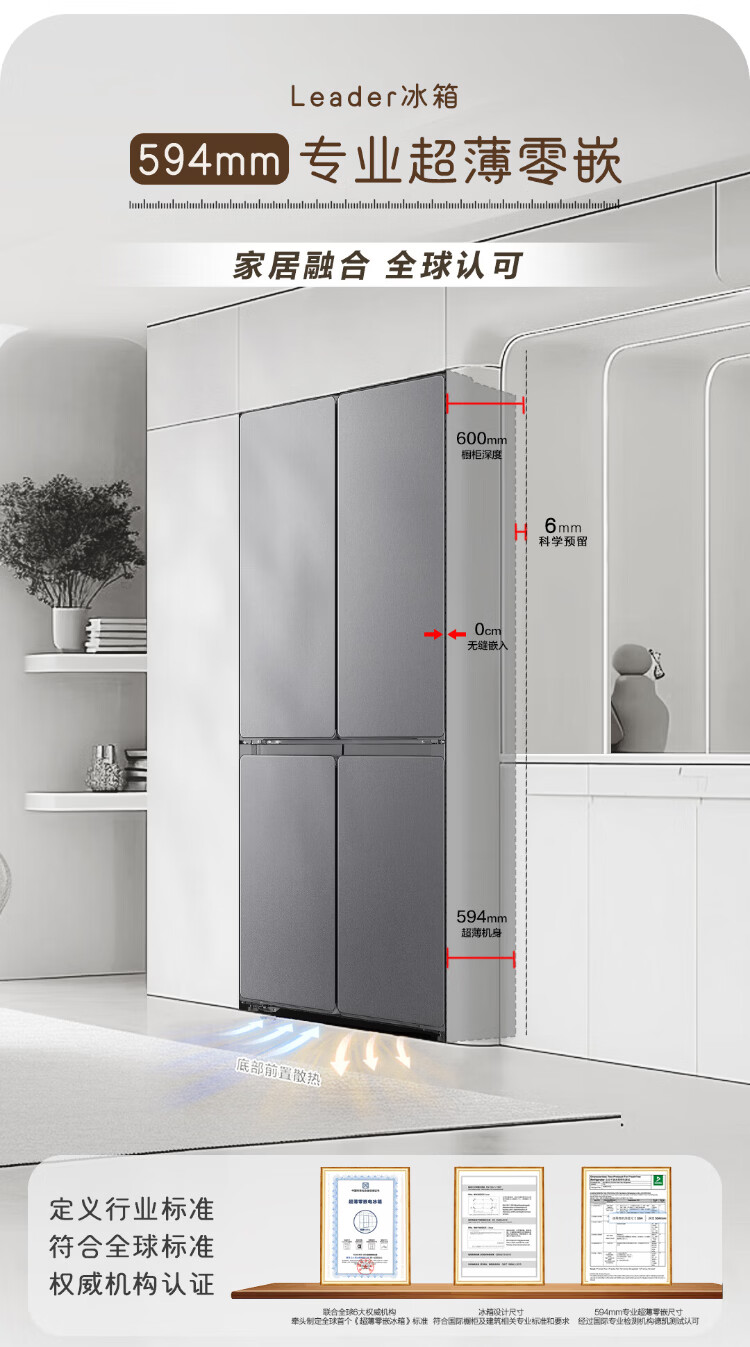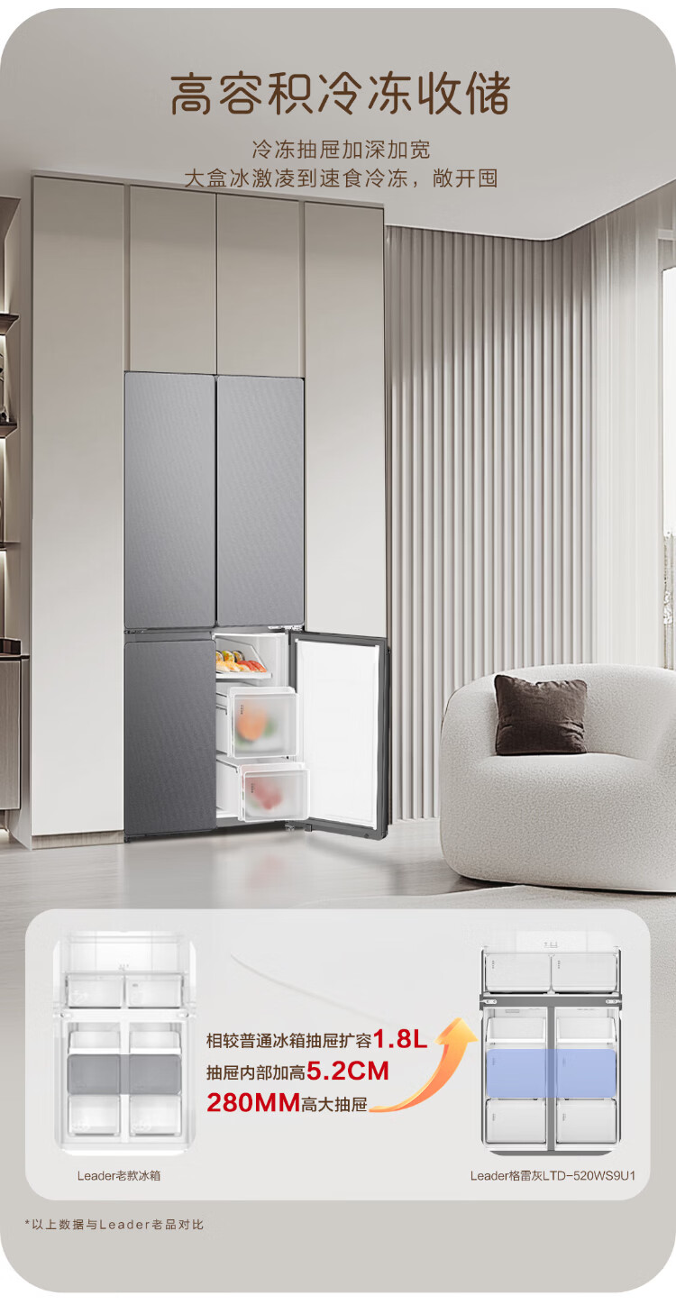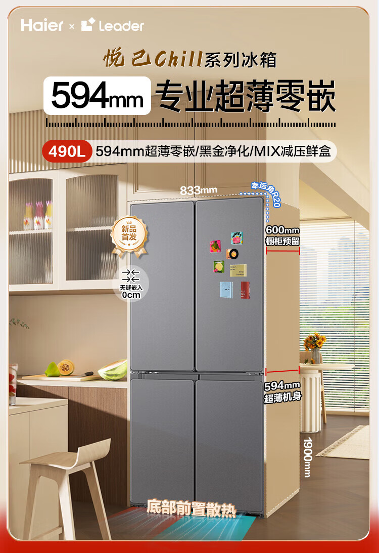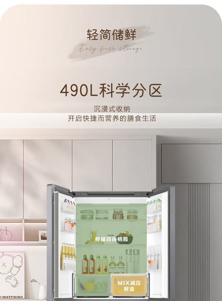 Haier Refrigerator produces 520 ultra-thin 594mm zero-embedded 490 liter cross-folding four-door Haier home refrigerator first-class energy efficiency dual-frequency Leader refrigerator Yueyi Series + 594mm ultra-thin zero-embedded