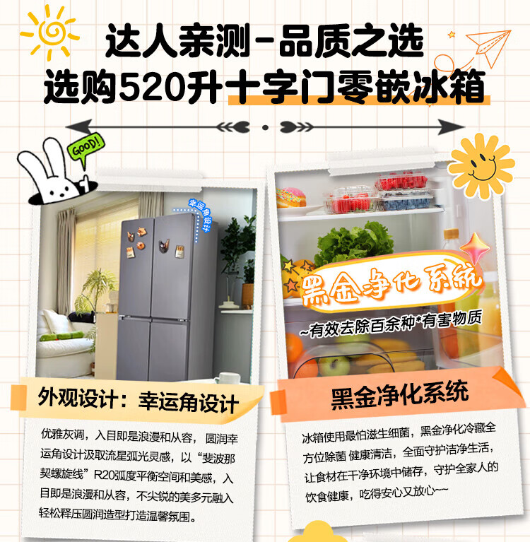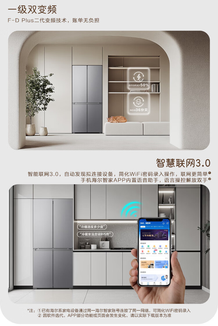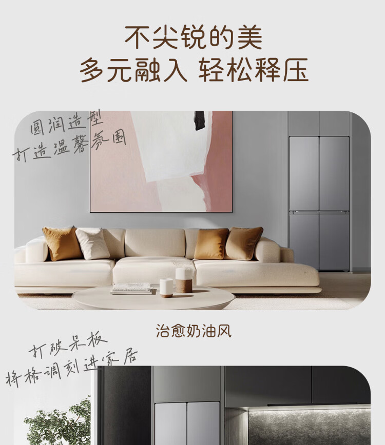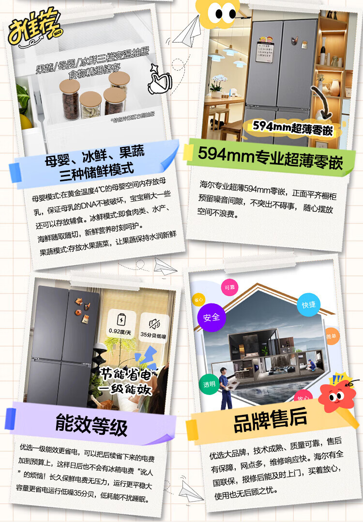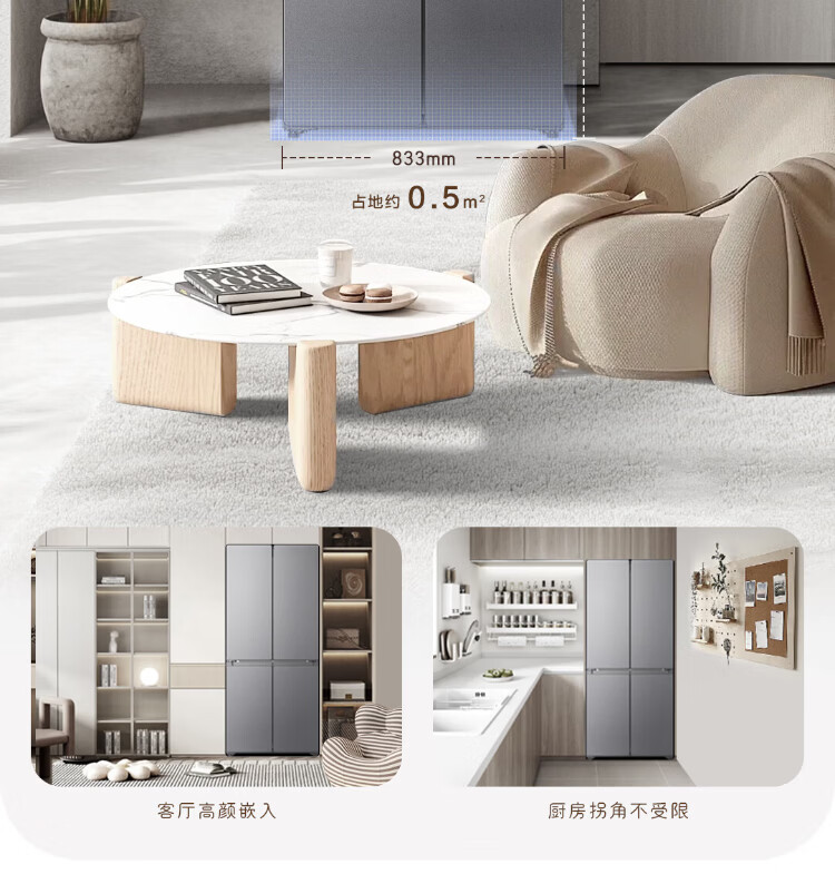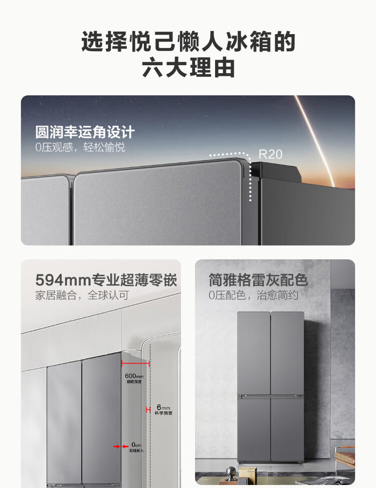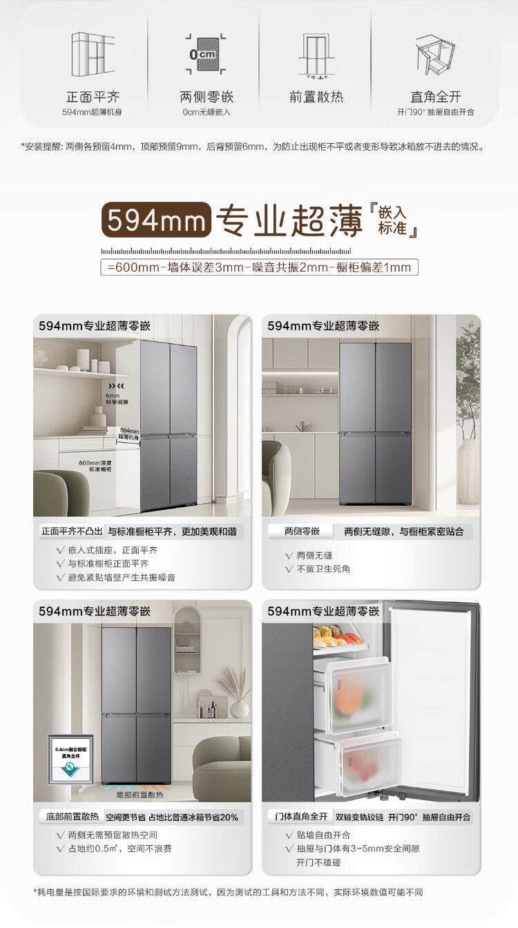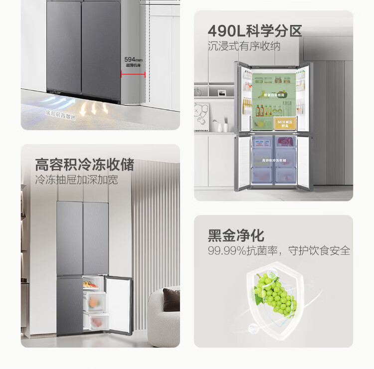 Haier Refrigerator produces 520 ultra-thin 594mm zero-embedded 490 liter cross-folding four-door Haier home refrigerator first-class energy efficiency dual-frequency Leader refrigerator Yueyi Series + 594mm ultra-thin zero-embedded