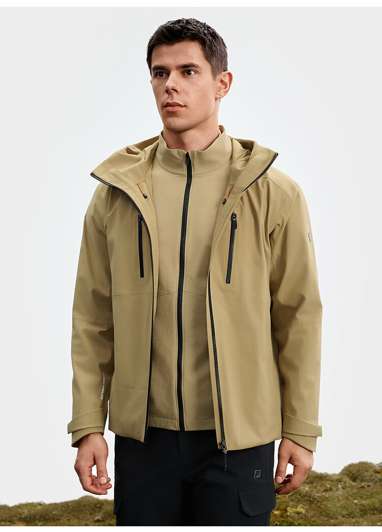 FILA Official Men's Jacket Two-in-One Jacket 2025 Autumn New Outdoor Sports Hooded Jacket for Men Dark Black-BK L 175/96A/L