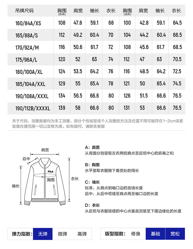 China (cm) 165 / 88-90 170 / 96-98 175 / 108-110 180 / 118-122 185 / 126-130