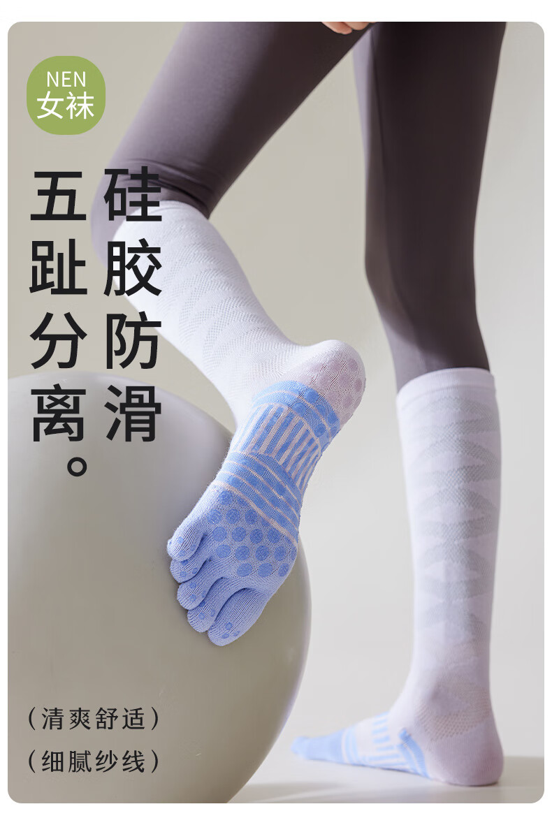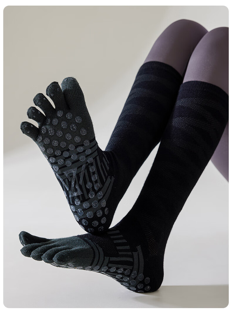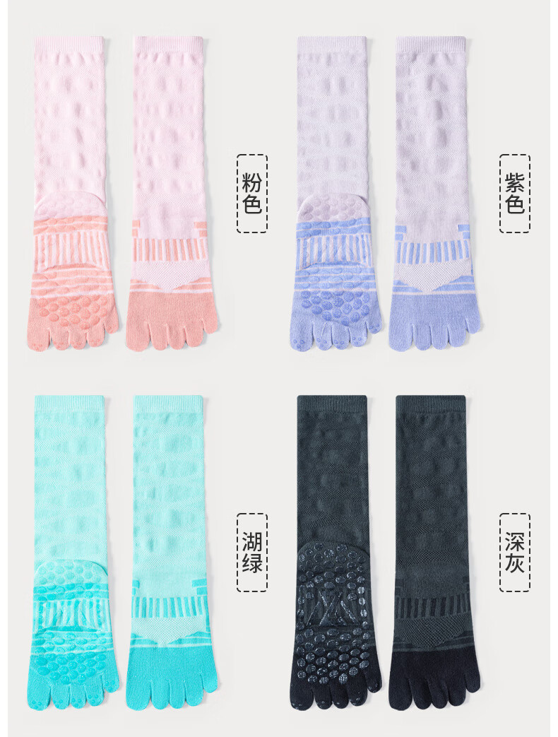 Catman five-finger yoga socks for women, professional sports non-slip, 2 pairs of long split toe Pilates fitness high socks, purple + pink, 2 pairs, one size fits all, 35-39