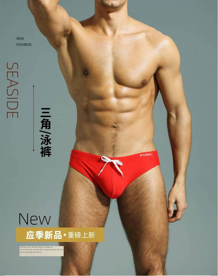 Nanbomaru briefs men's hot spring low-waist sexy anti-embarrassment muscular men beach seaside vacation swimsuit swimming trunks red M 165