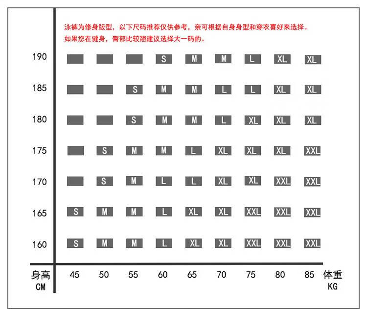 China (cm) 160-165/84-86 165-170 / 88-90 167-172 / 92-96 168-173 / 98-102 170-176 / 106-110