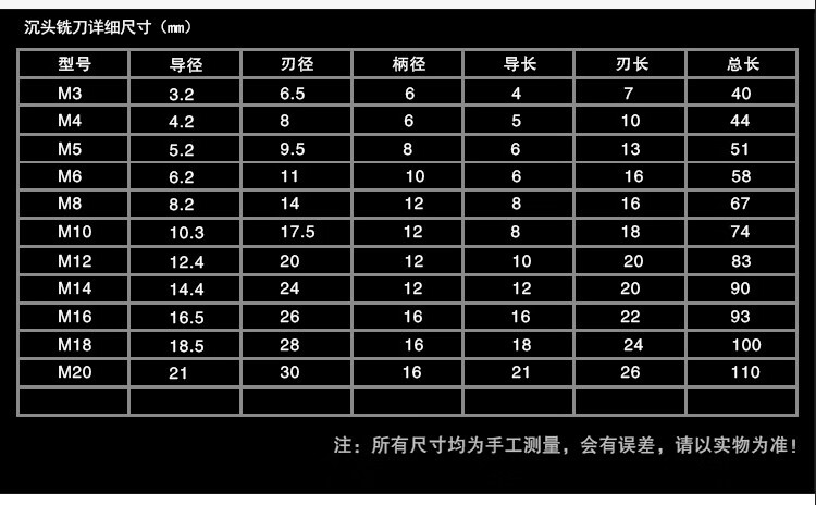 Yue Changsheng Hongfeng countersunk head cutter, high-quality high-speed steel fully ground countersunk head milling cutter, countersink drill, flat bottom countersink drill, screw countersink cutter M20*40