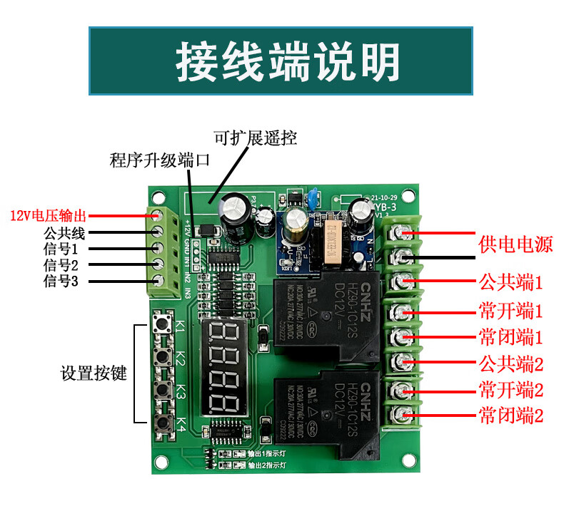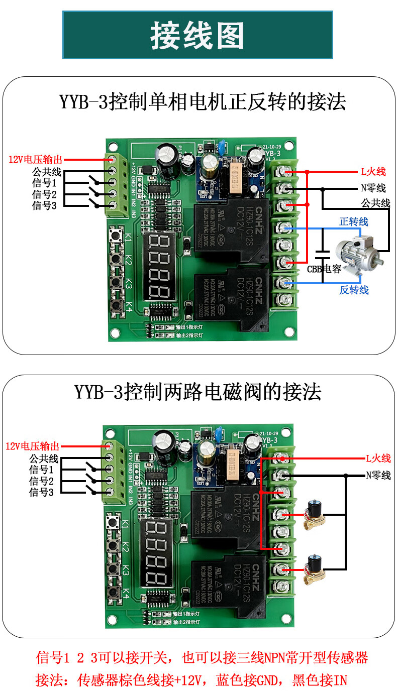 Yue Changsheng AC 220V motor forward and reverse control board limiter dual two-way delay time relay cycle work YYB-3 with transparent shell