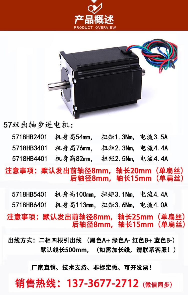 Yue Changsheng mask machine special 57 double output shaft stepper motor high torque 2304HS4DV8 with driver 5718HB3401 57HB4401/body length 82mm motor 2.5 Nm