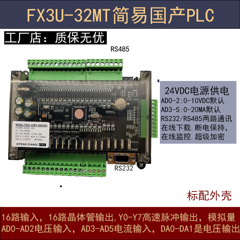 Plc industrial control board controller domestic simple board type FX3U24MT programmable controller compatible with work2 software high-speed input port AB (not single shot)