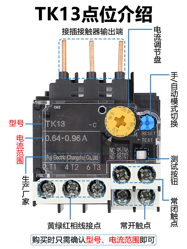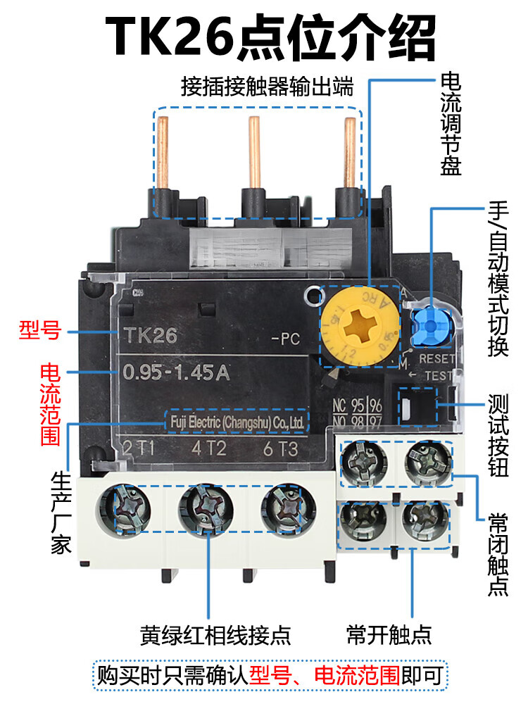 Yue Changsheng original genuine Fuji Fe thermal overload relay TK13-PC TK26 TR-0N/3 current optional TK-E02 current range 0.95-1.45A TK26