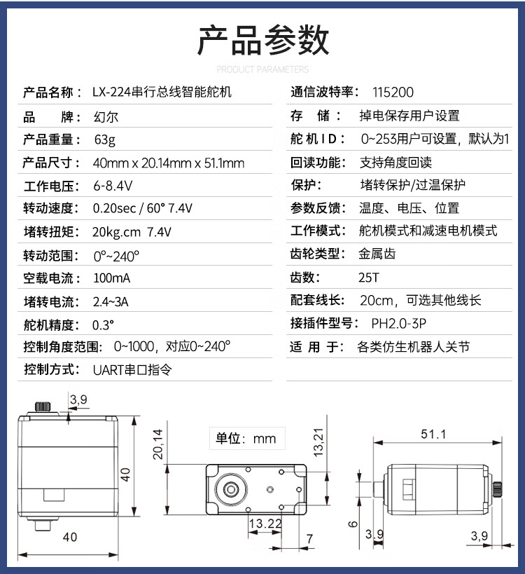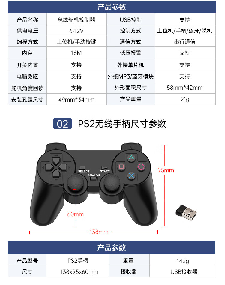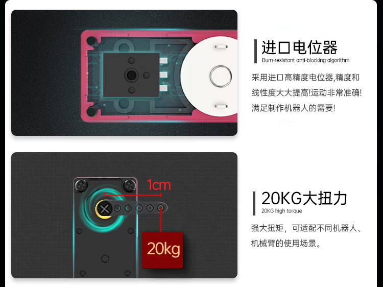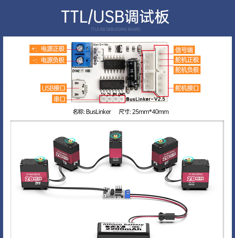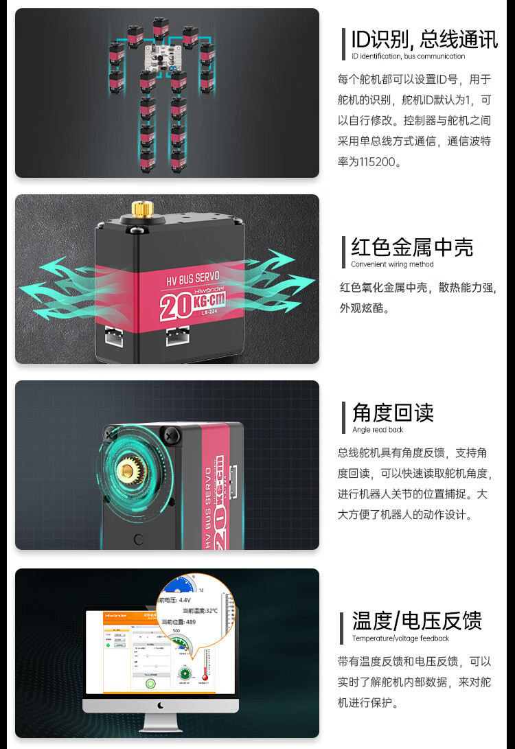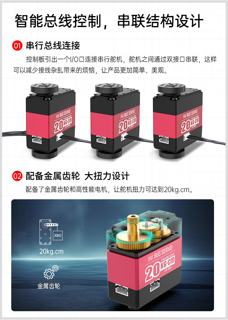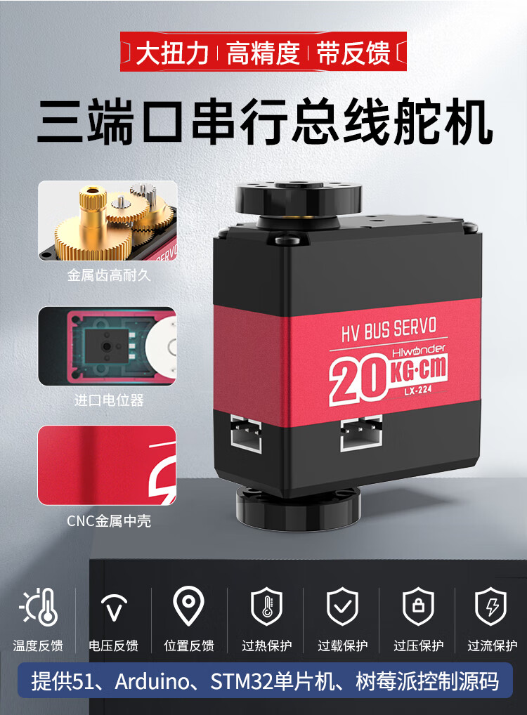 Huaner serial bus servo LX-224 three-port 20KG high-torque two-axis robot mechanical arm servo bus servo control board + handle