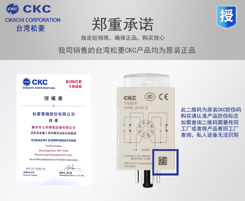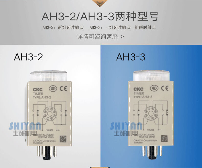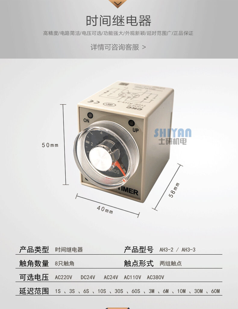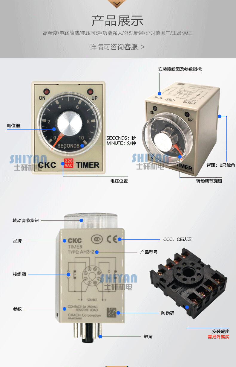 Yue Changsheng original genuine Taiwan Songling CKC AH3-3 time relay AH3-2 220V 24V power on delay 30M (30 minutes) DC24V base is taken separately - contact customer service