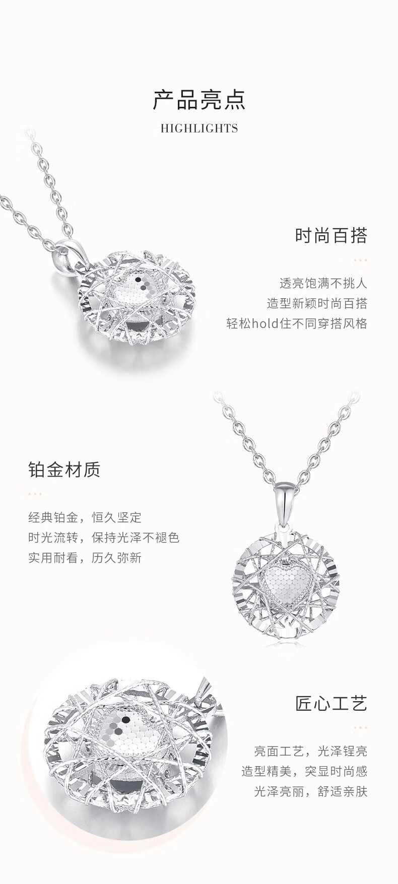 Lao Fengxiang PT950 disc pendant for women, platinum love necklace, light luxury and versatile Valentine's Day birthday gift for girlfriend, platinum disc pendant, about 2.9g, free silver chain + brand gift box