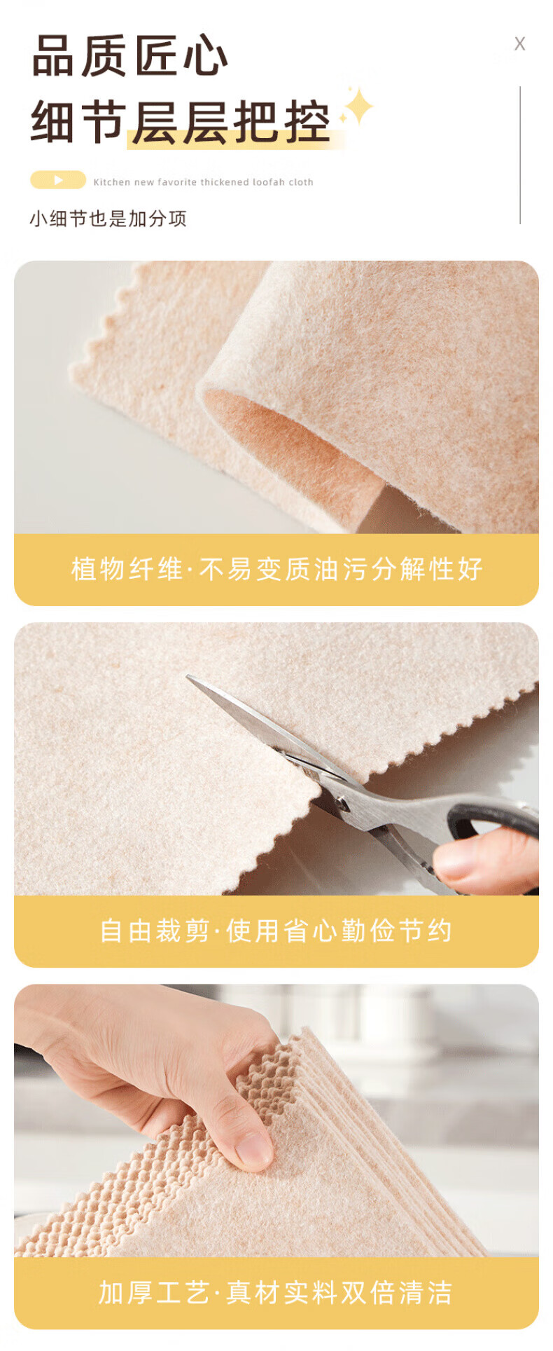 AILUKI Japanese loofah rags for the kitchen, thickened and large, durable, oil-removing, water-absorbing, lint-free, household dishwashing, 40 packs, 28*38cm
