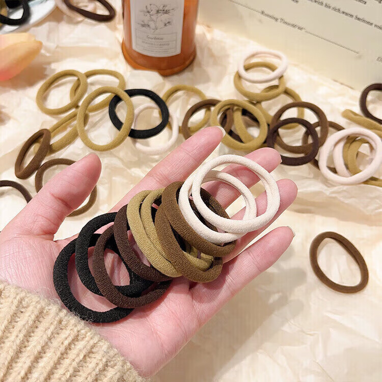 IMIESEVE Korean style simple thin headband set basic rubber band that is versatile and does not hurt your hair. High elastic elastic band thin circle disposable plain circle 50 pieces in bag mixed color-