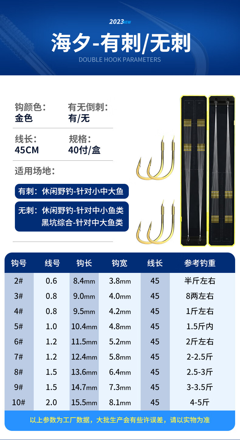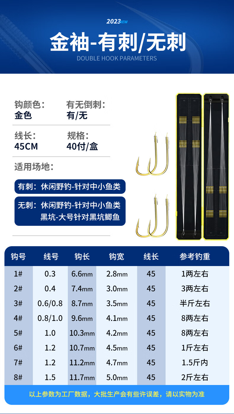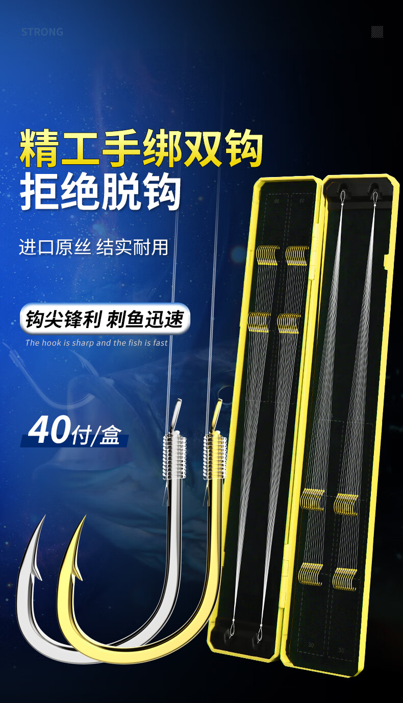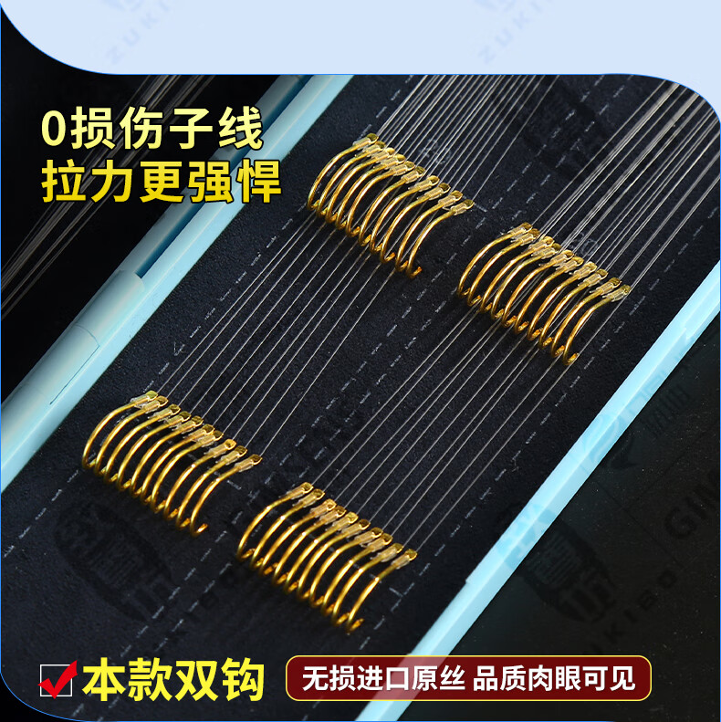 Imported fish hooks tied with genuine sub-thread double hooks finished product set complete set of gold sleeves gold Haixi Iseni crucian carp double hooks gold sleeves with thorns hook 3/4 + thread 0.6/0.8, 20 pieces each