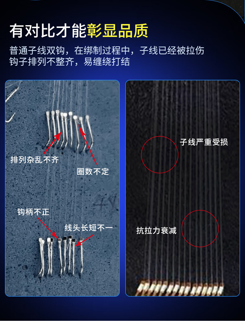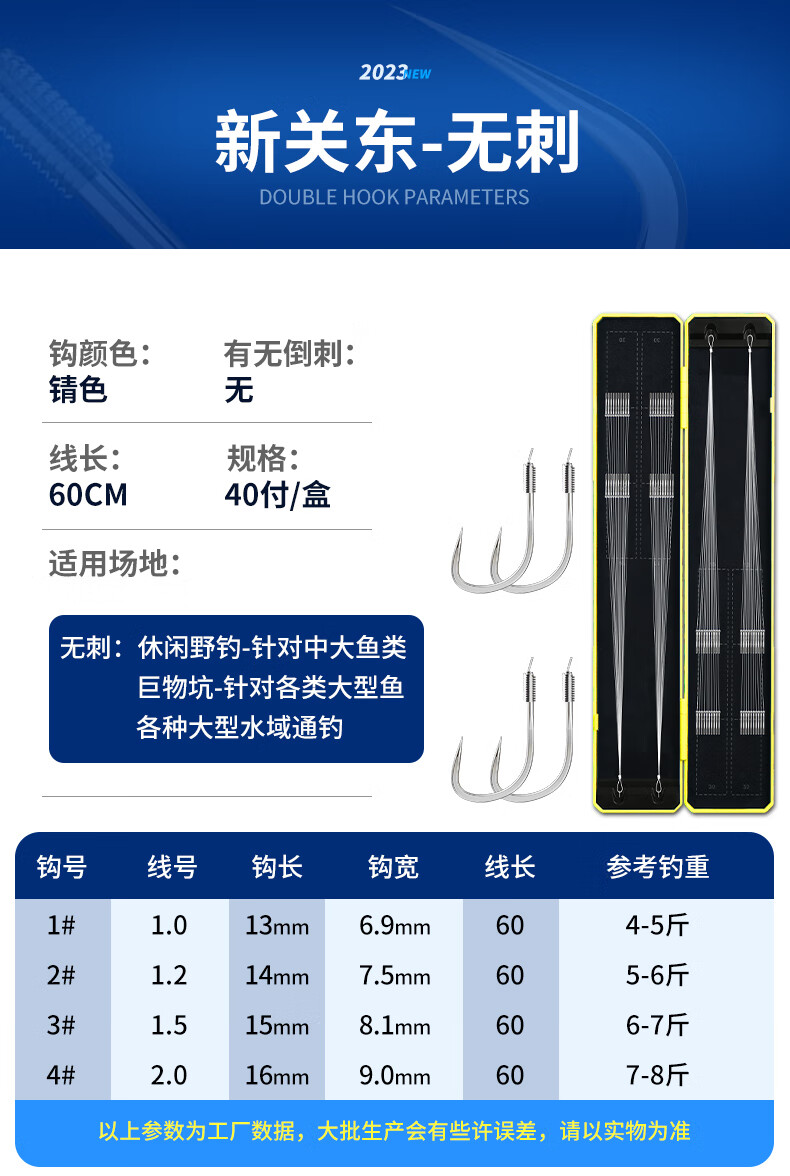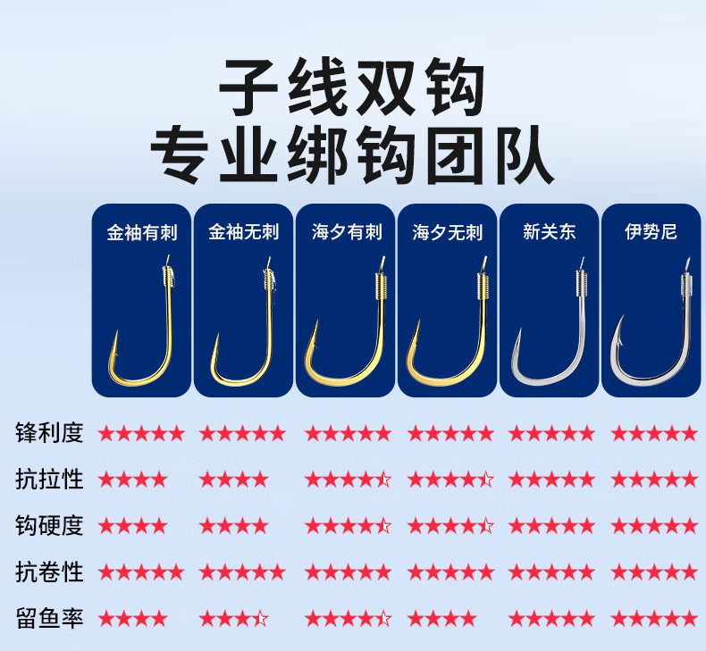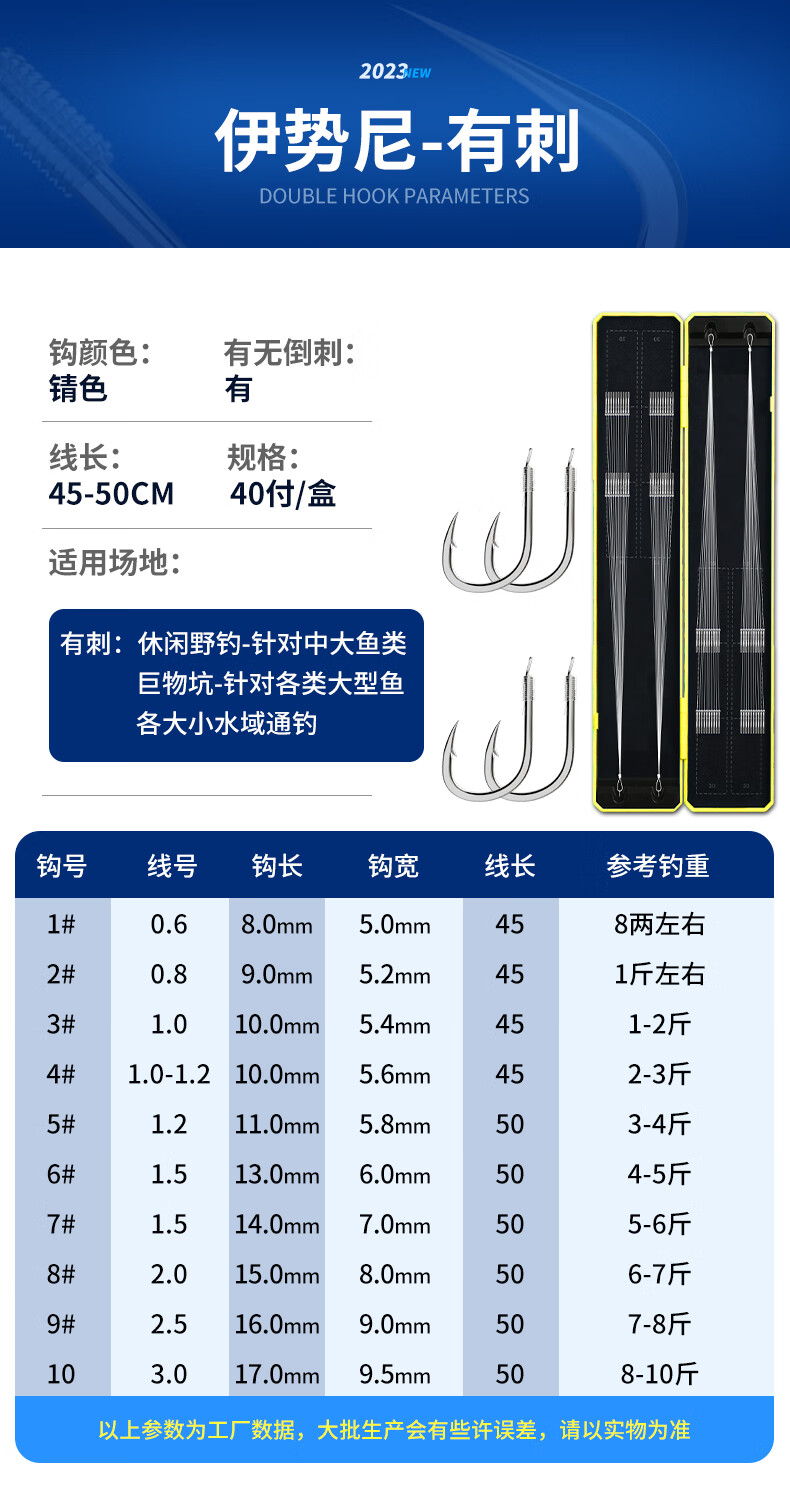 Imported fish hooks tied with genuine sub-thread double hooks finished product set complete set of gold sleeves gold Haixi Iseni crucian carp double hooks gold sleeves with thorns hook 3/4 + thread 0.6/0.8, 20 pieces each