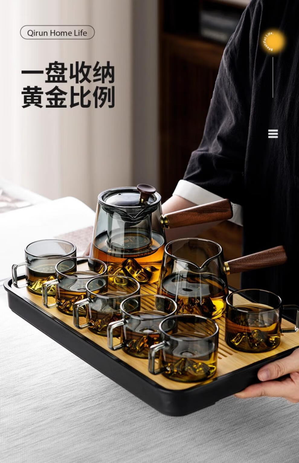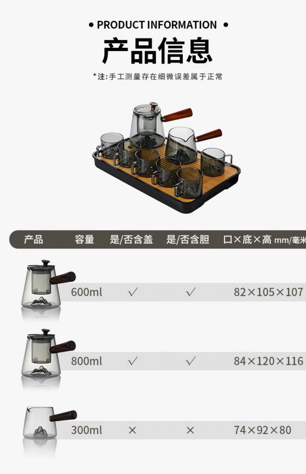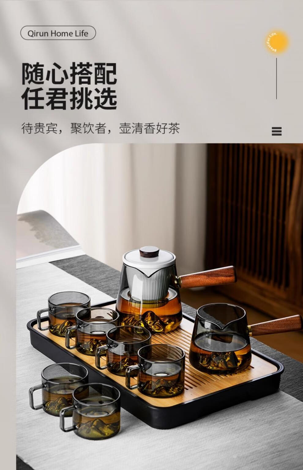 MZXM Japan imported quality glass tea set set for making tea, household tea tray, large capacity living room tea cup, office tea cup, transparent 600ml mountain view pot set, 8 pieces, complete set
