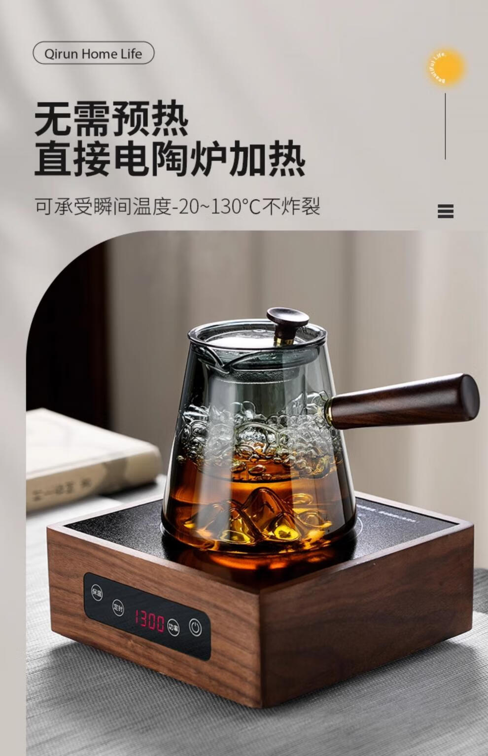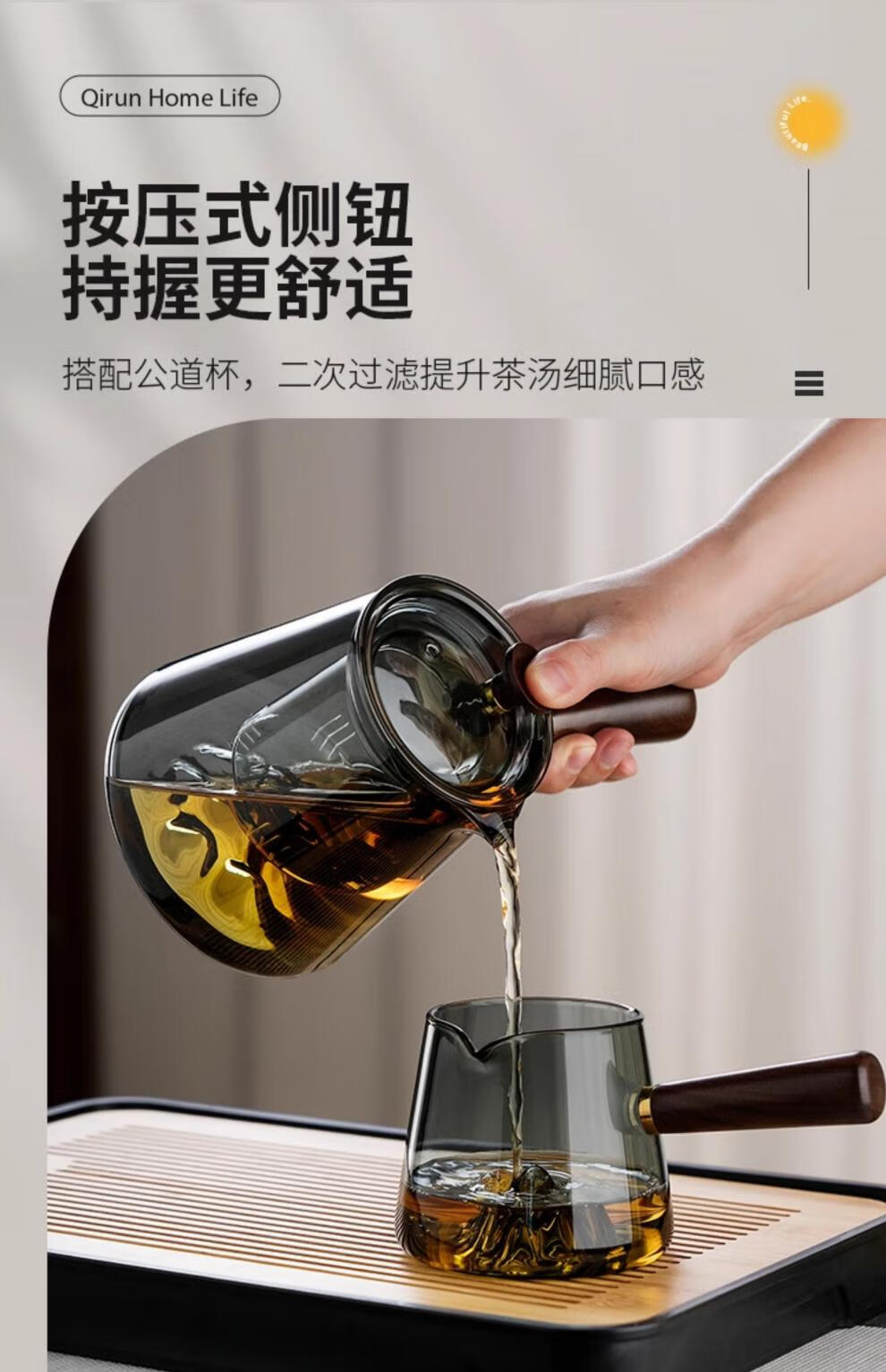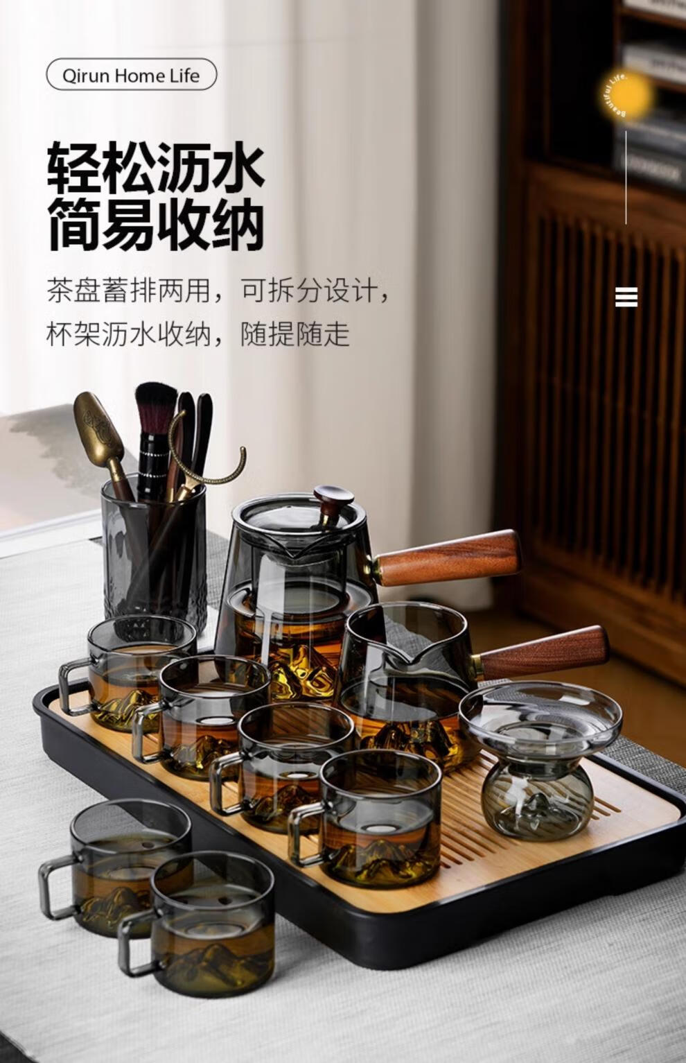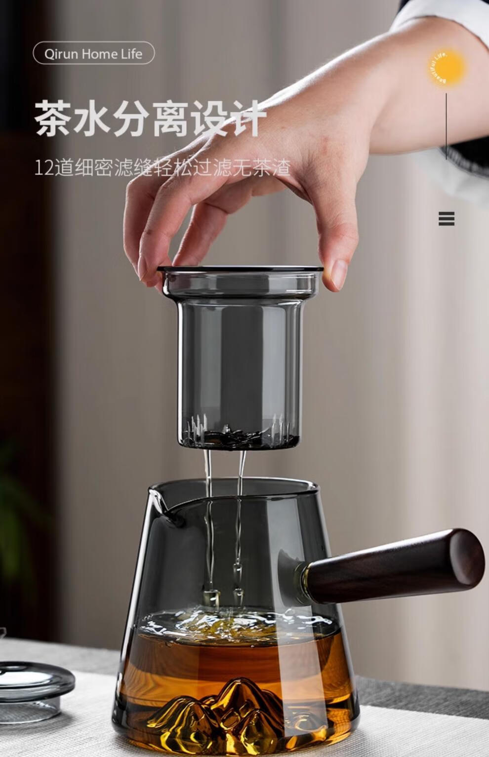 MZXM Japan imported quality glass tea set set for making tea, household tea tray, large capacity living room tea cup, office tea cup, transparent 600ml mountain view pot set, 8 pieces, complete set