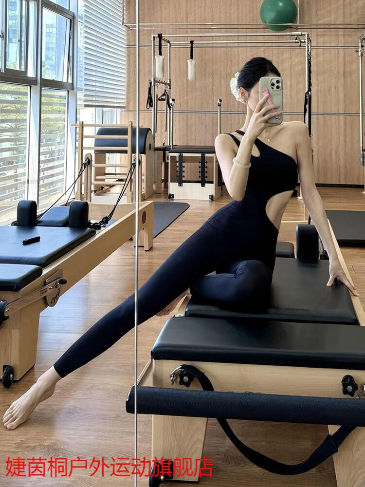 Jie Yintong Beautiful Back One-piece Yoga Wear One-piece Women's 2025 New Pilates Training Wear Set Sports One-piece Fitness Wear Black One-piece Yoga Wear Threaded Fabric M